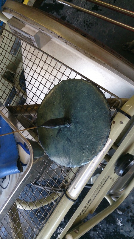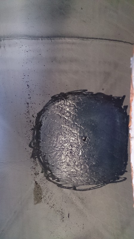 そしてここの穴の周囲とアテキャンに特殊糊を何回か重ね塗りして穴を塞ぎます。