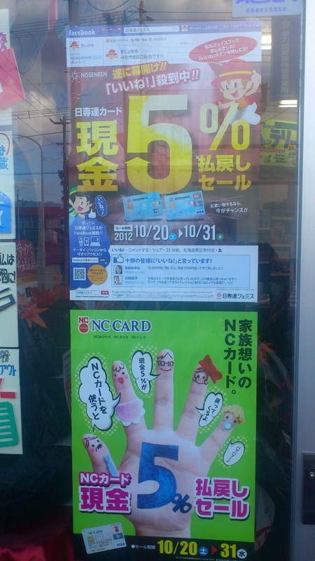 期間中は日専連・NCカードの現金5%払い戻しセールも