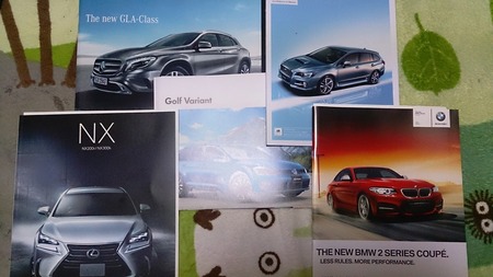 当店にはこのようにクルマのカタログも何車種か置いてあります
