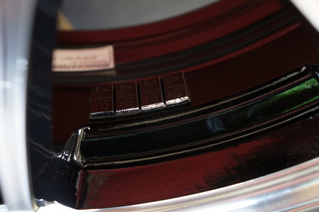 このホイールは内側もブラックなのでバランスウエイトが目立たないよう