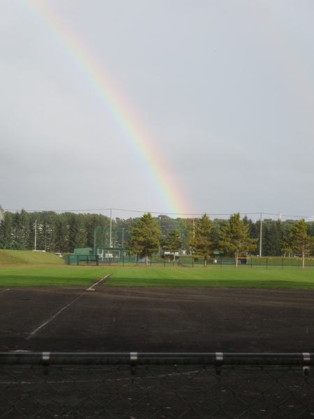 試合終わりに、きれいな虹が出ておりました!!