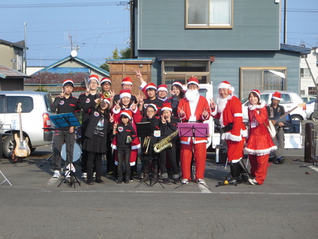 『サンタラン』の出発場所となる、役場の駐車場で演奏致しました!