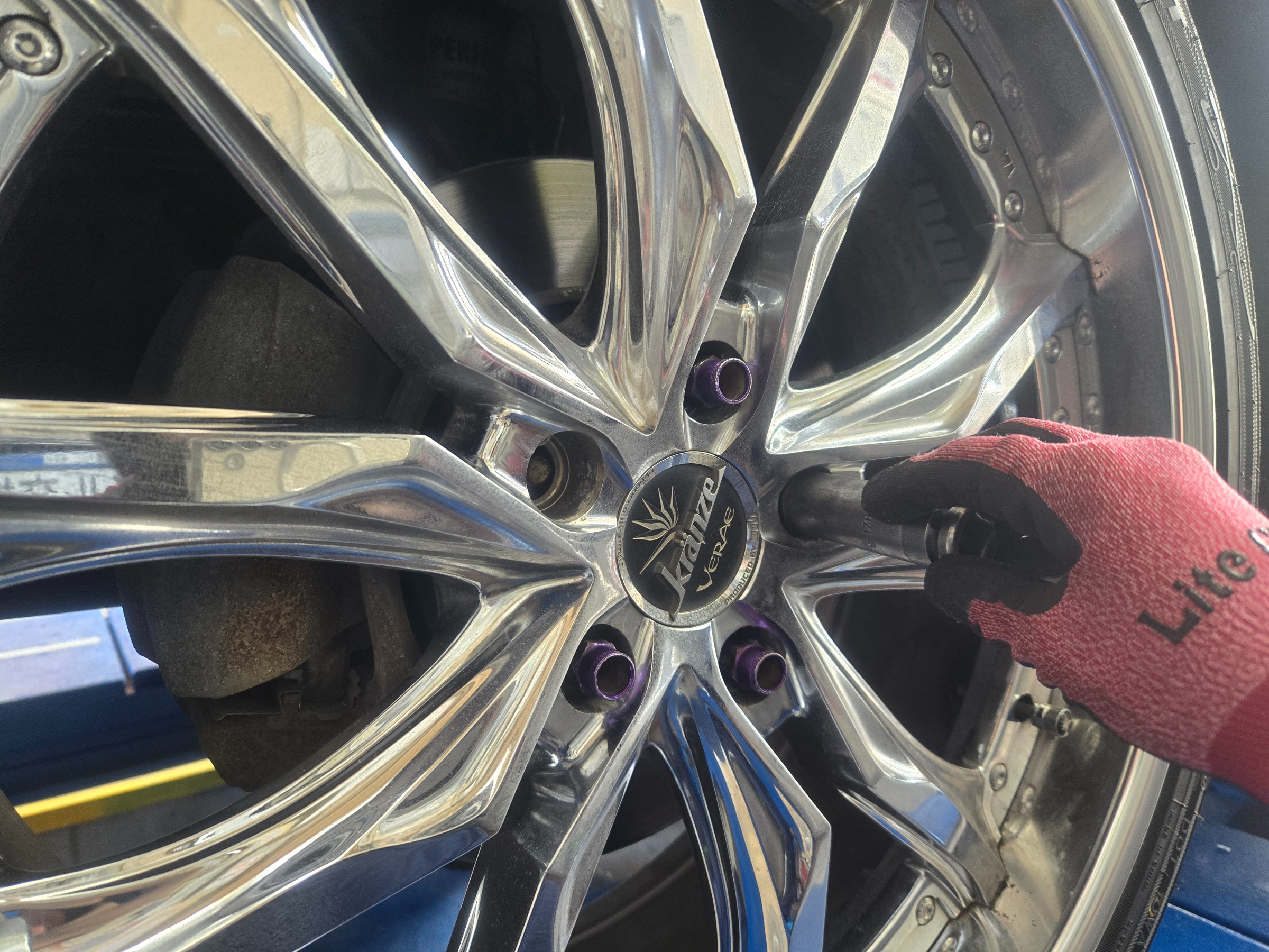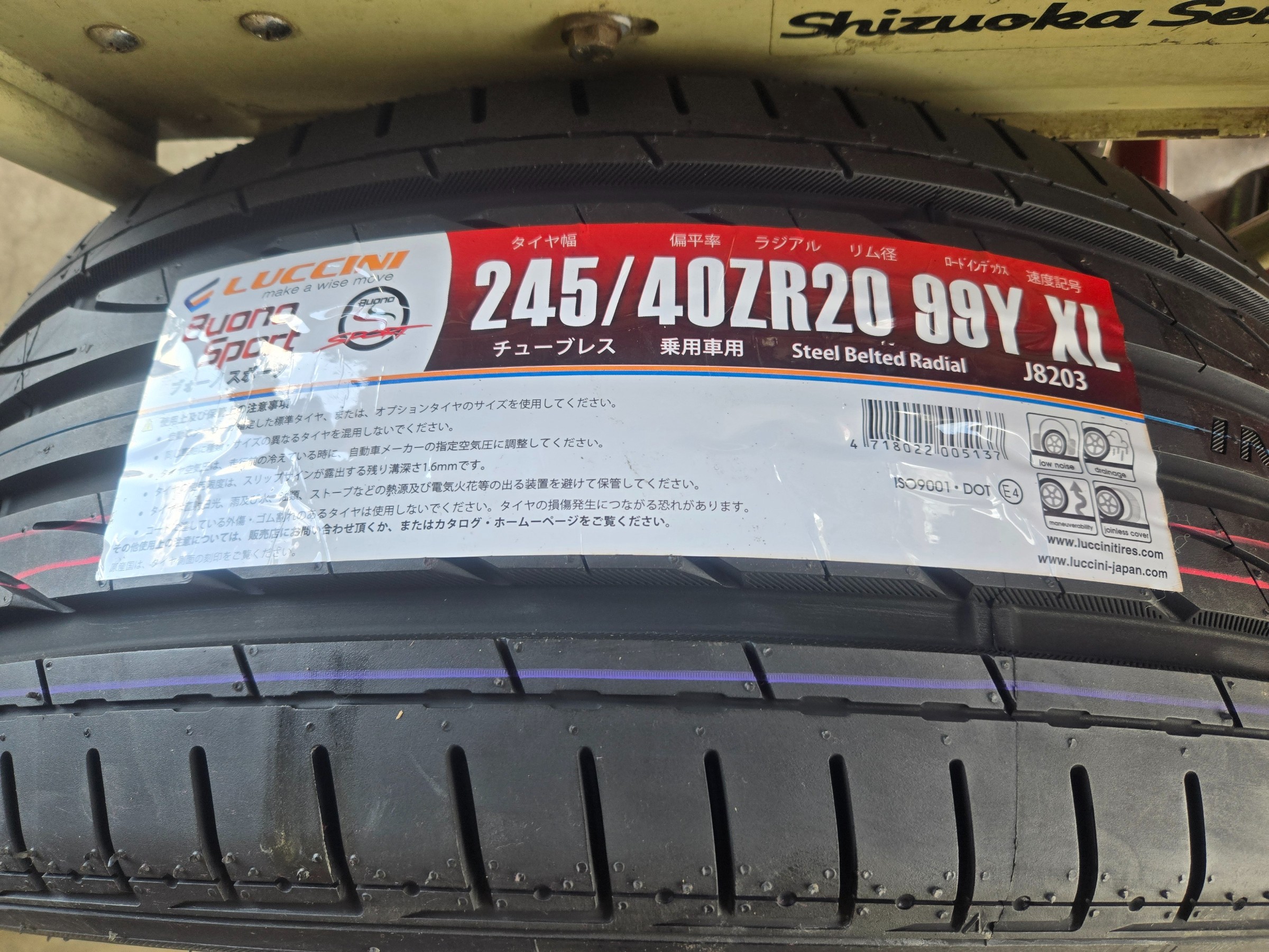 いつも遠方よりお越し下さいますO様。だいたい二年おきに夏タイヤを2本づつ購入しております。タイヤサイズは245/40R20とインチアップしている事から、なるべく価格を抑えたいという事で、『ルッチーニ』に決定しました