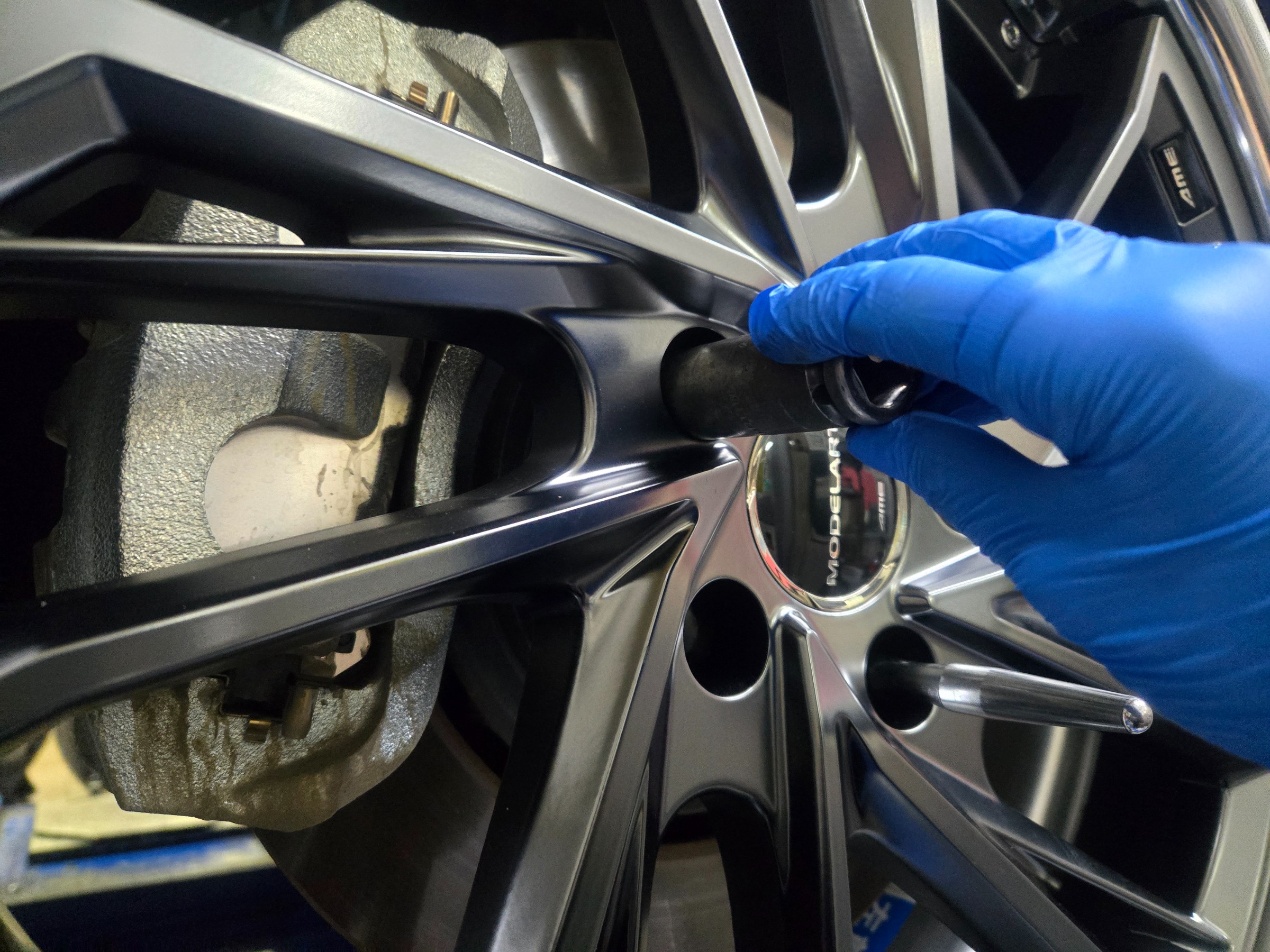 締めた後は 十字レンチで