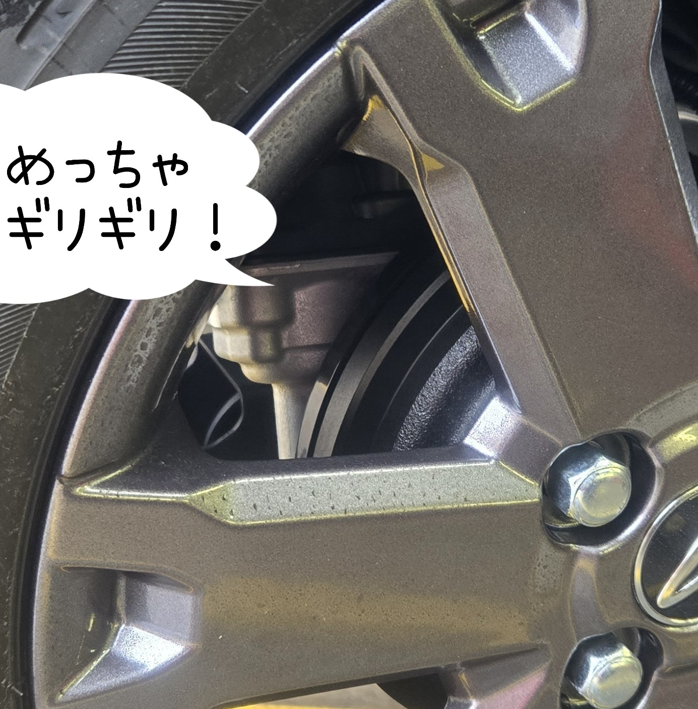 ホイールにめっちゃ近くて