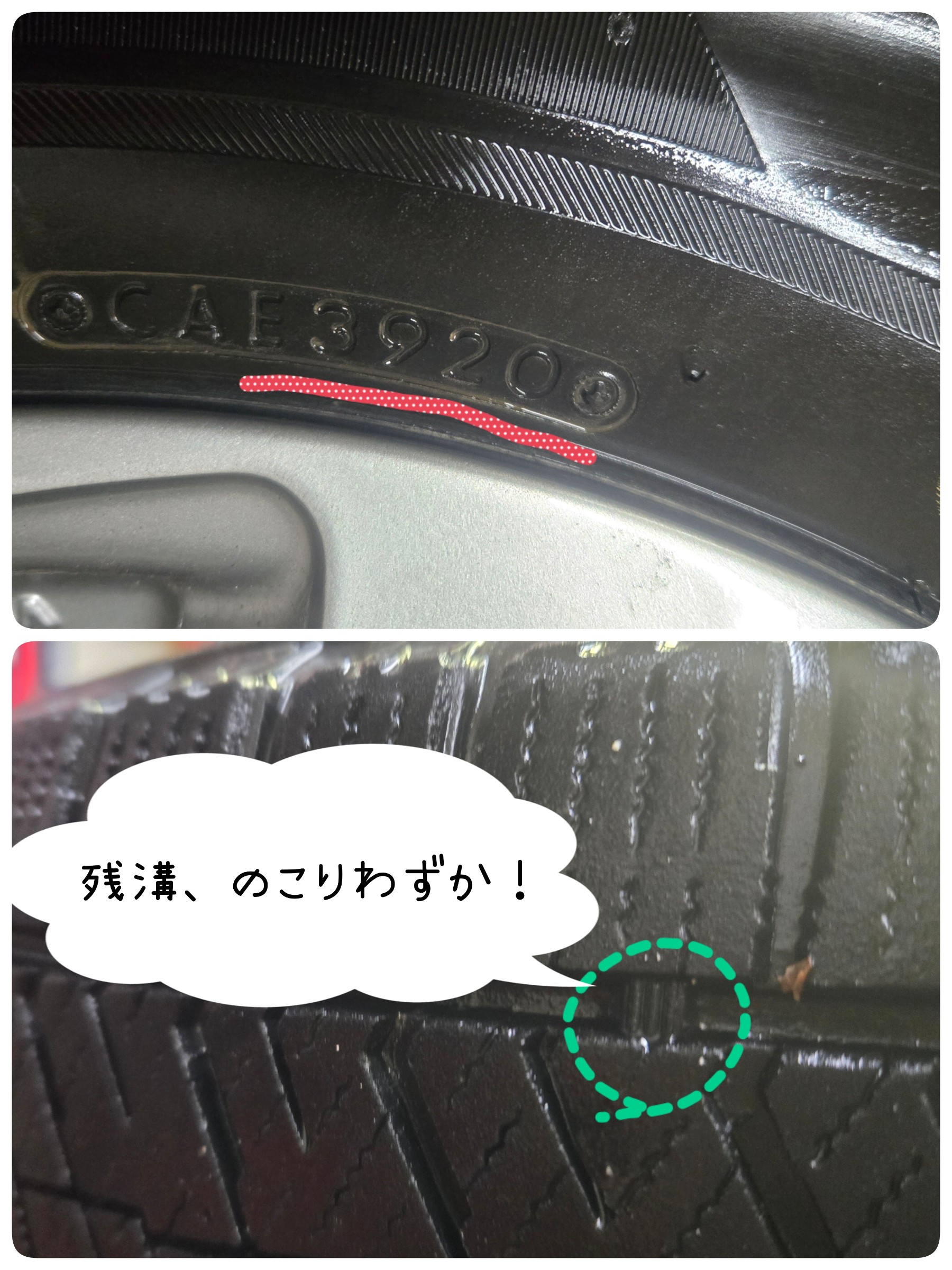 古いスタッドレスタイヤで