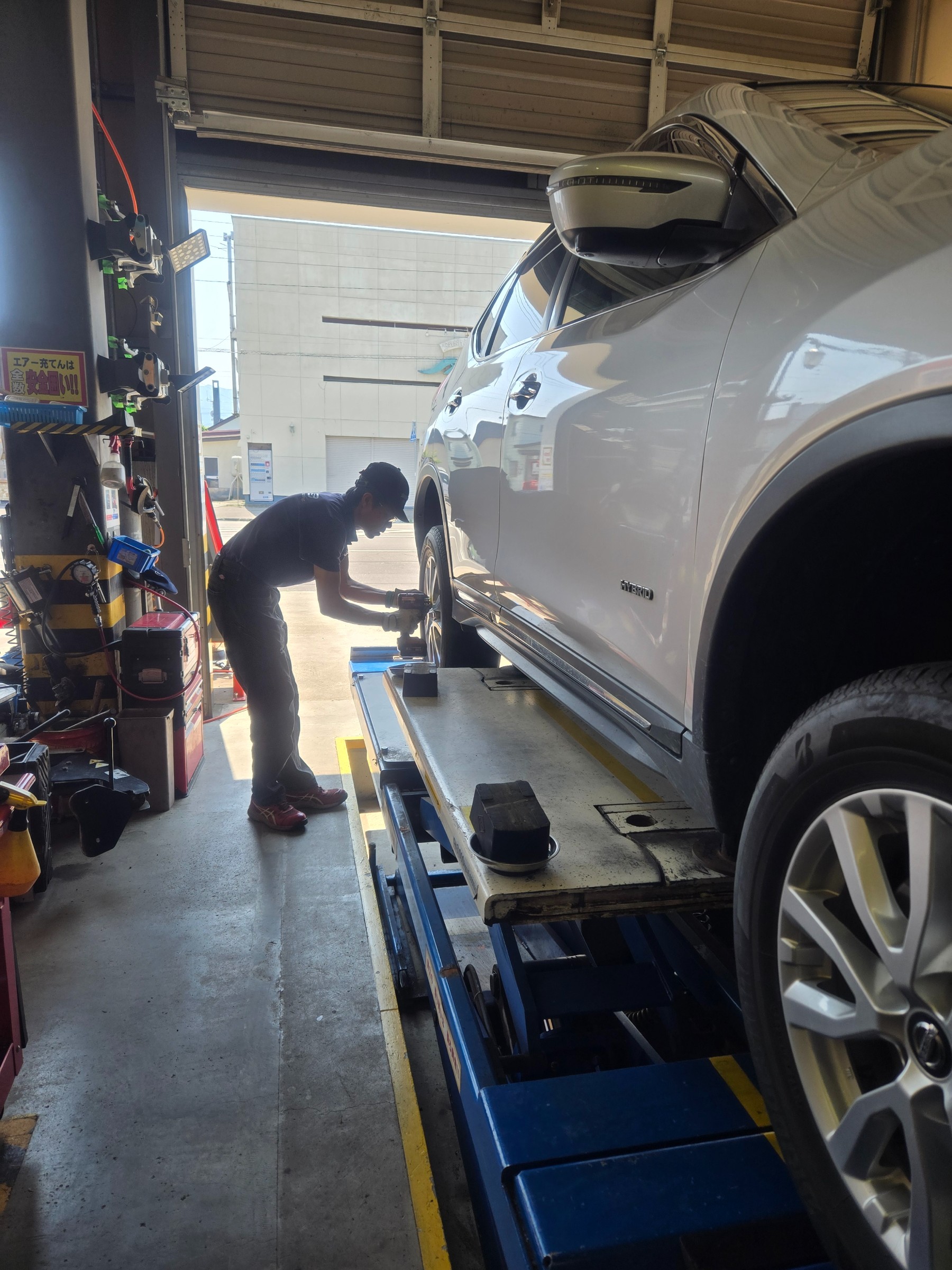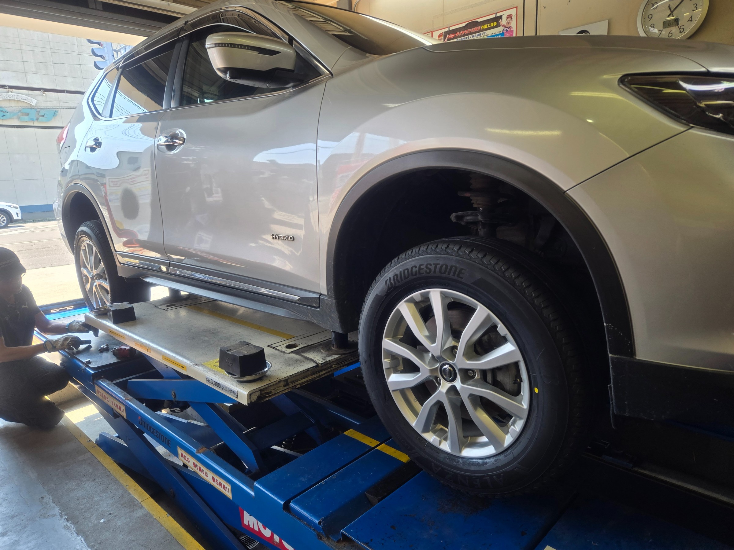 町外にお住いのエクストレイル様。2022年に当店でLX100を購入いただいており、今回「また同じタイヤでお願いします」と電話でご予約いただきました~ヾ(≧▽≦)ノ