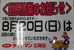 いつも当店をご贔屓くださり誠にありがとうございます 誠に勝手ですが8月20日(日)は臨時休業とさせて頂きます