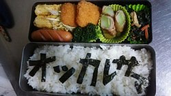 今日は我が家の長男くんが卒業式前の最後の登校日ですって、事で…母ちゃんとしても最後のお弁当作りっちゅーワケどす!( *´艸`)『オツカレサマ』って海苔であしらってみましたー(*^^*)ん…なんか、『ツ』が小さくて『オッカレサマ』になっちゃった(笑)兄ちゃん‼毎日お弁当箱を空にしてくれてありがとうねぇー(T∀T)
