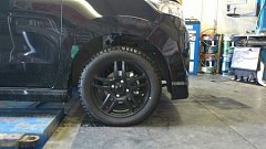 今日はボデーカラーがブラックのお車にホイールカラーがブラックなものを 装着させて頂きました。