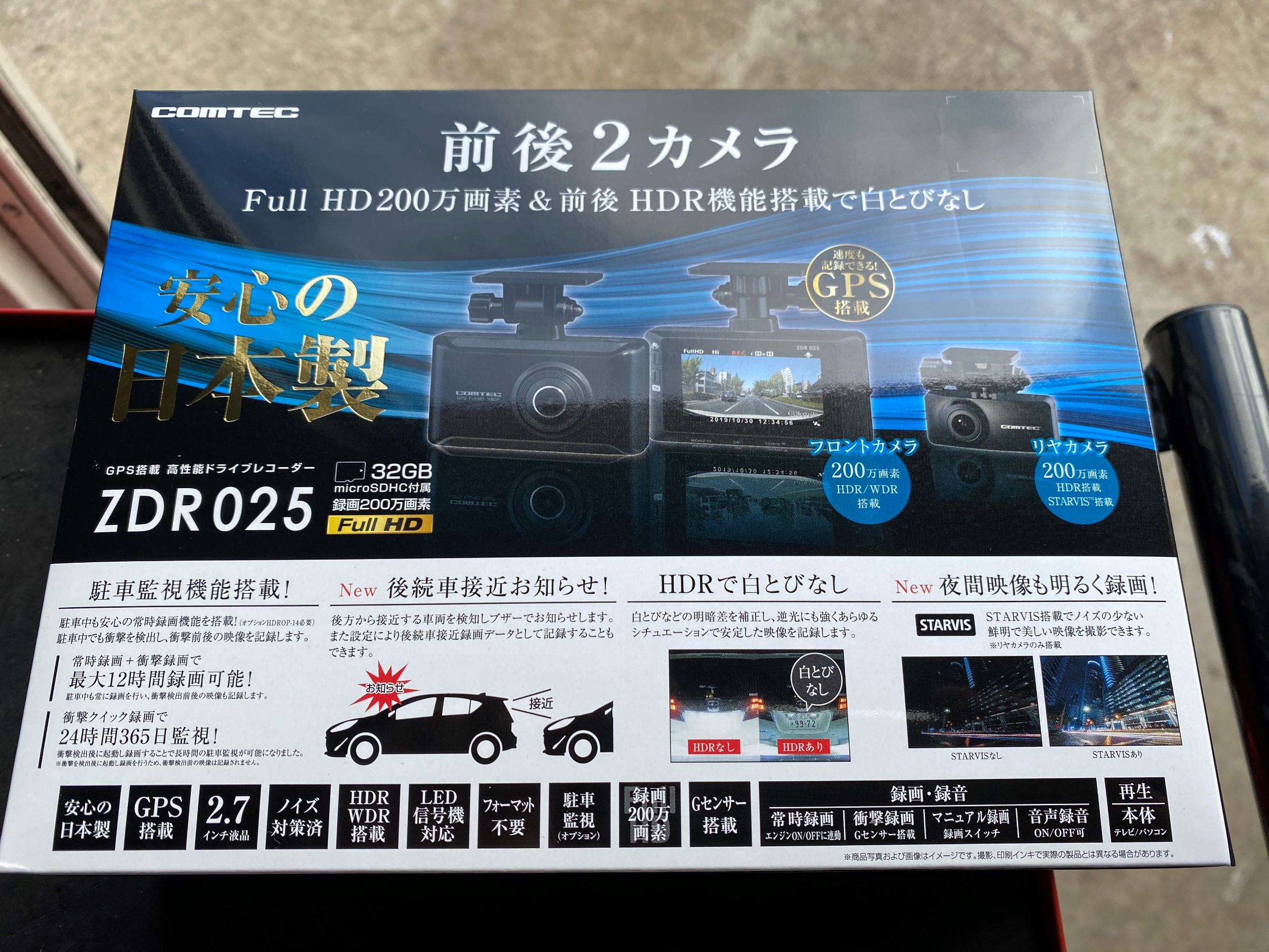 お取り付けするドライブレコーダーはコムテックの新製品ZDR025