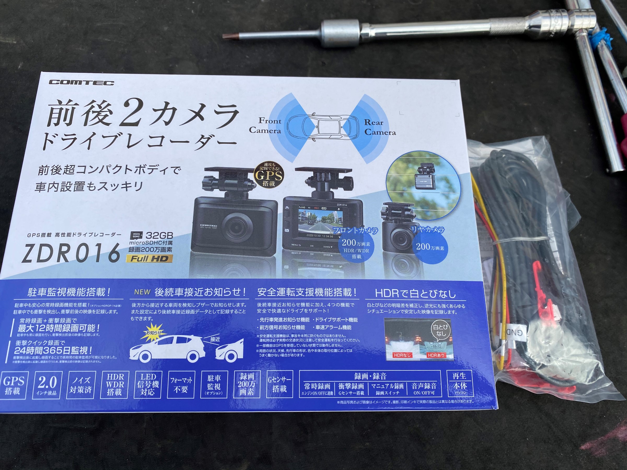 ドライブレコーダーはコムテックの新製品 ZDR016を取り付けです