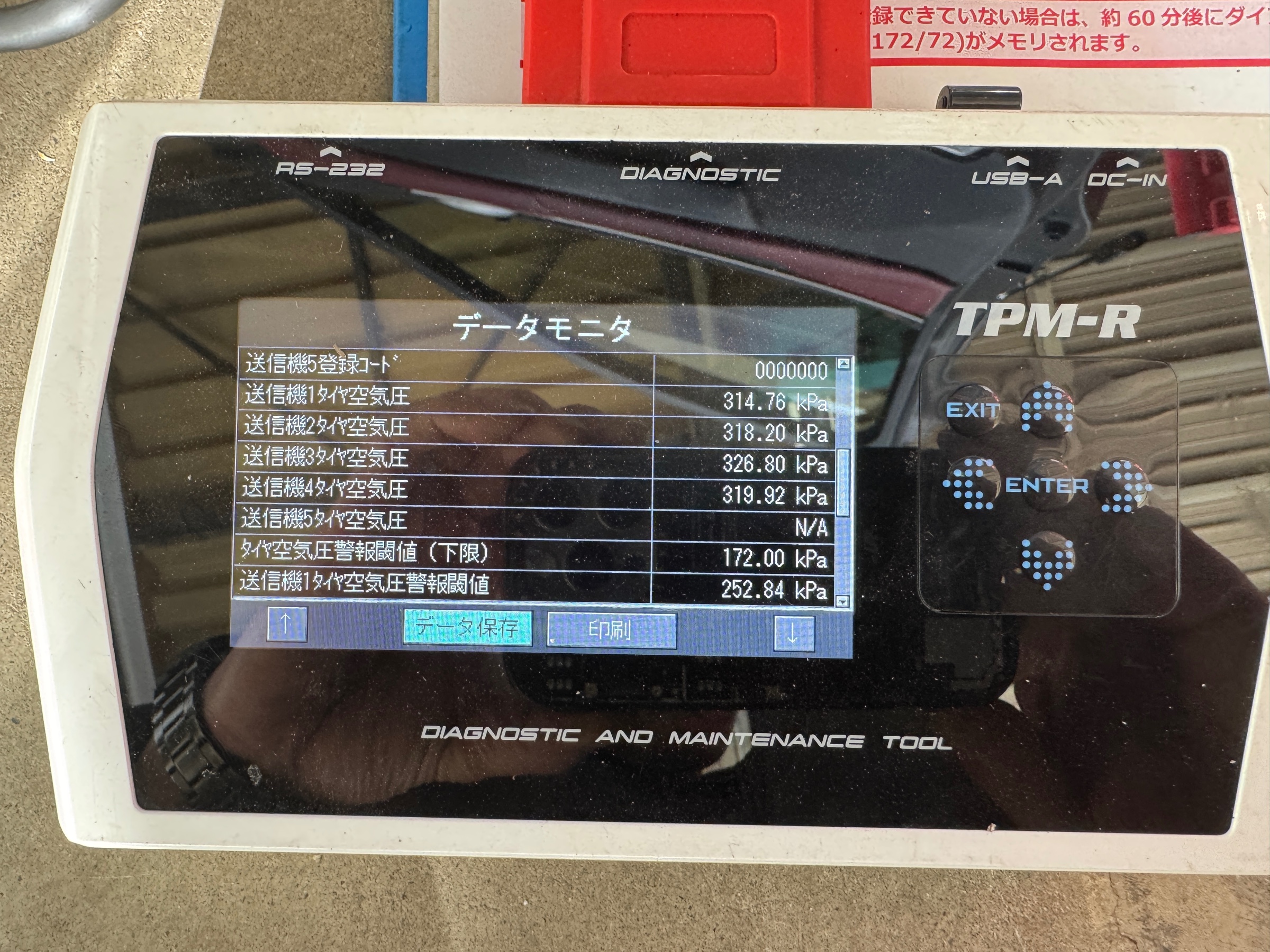 写真右側のある器械がトリガーツールというセンサーIDをホイールに付いた状態でも
