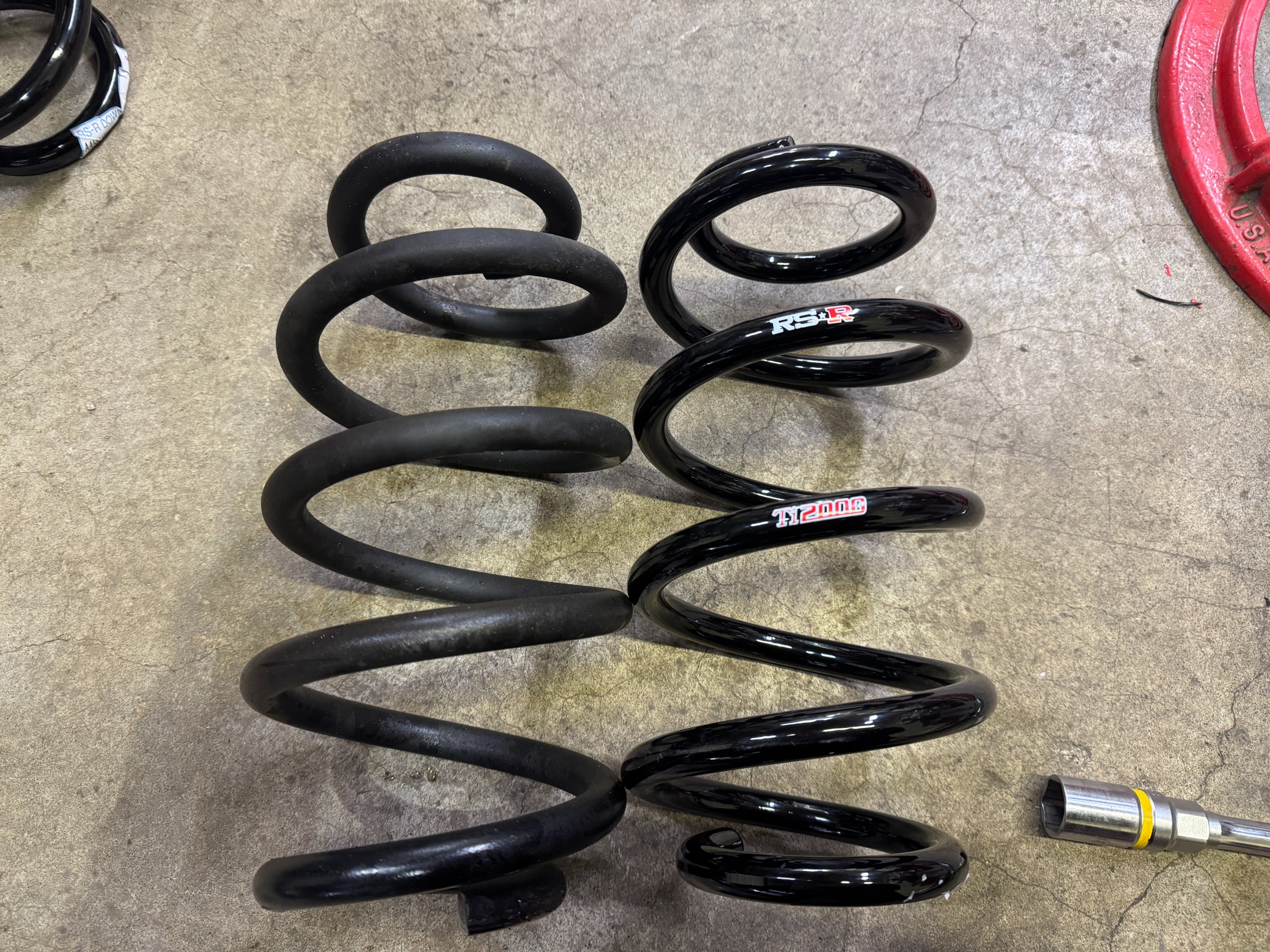 こちらは純正スプリング(右)と今回投入するRSRのスプリング