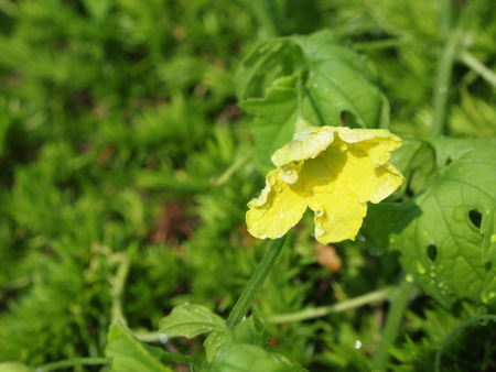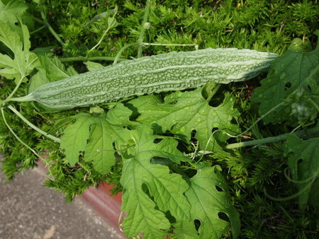 何故か花壇には、ゴーヤが・昨年の・・・破裂したゴーヤの中の種が・・