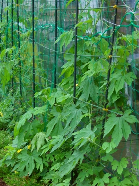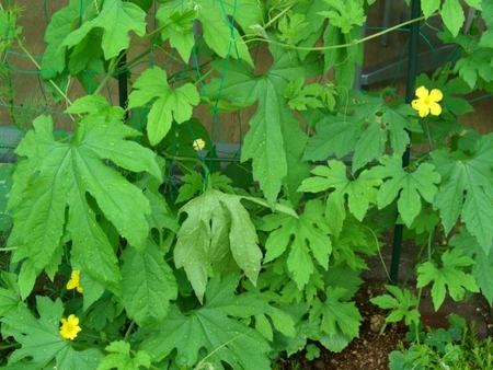 着々と・・ゴーヤの実の赤ちゃんらしきものも・・
