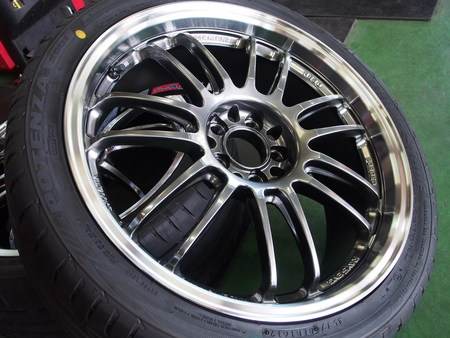 ホイール:(レイズ RE30 8J 5H-100 +44 フォーミュラーシルバー/ダイヤモンドカットリム)