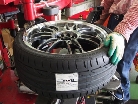 本日の作業の一部として、お客様からご注文頂いておりましたタイヤ&ホイールセットの組込み作業を実施致しました。