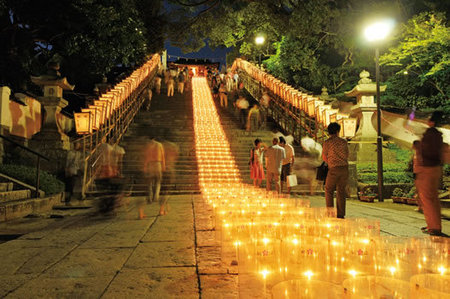 1,000余のろうそくが創り出す光の参道は圧巻です。