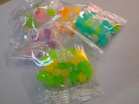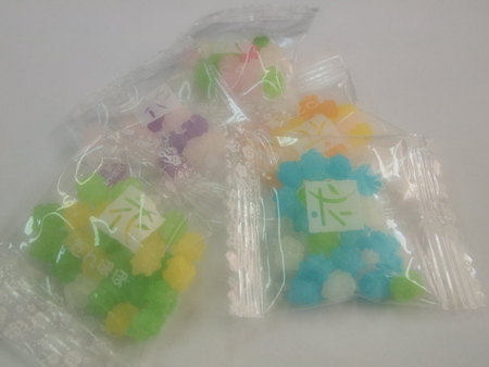 緑と黄色が『タンポポ』・青と緑が『あじさい』・紫と薄い紫が『ふじ』