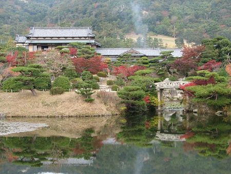 国指定の毛利氏庭園は、もみじの季節には、素晴しく綺麗お庭に・・。