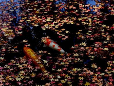 秋には、このように・・紅葉が・・池に・・落ちてるんです。