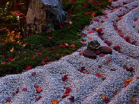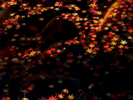 写真三枚目は、私が大好きな・・池の鯉と・・池に落ちたもみじさんたちです。