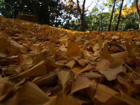 ふわふわの公孫樹の葉っぱのじゅうたんでした。