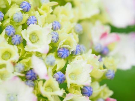 我が家の雑然とした庭に・・紫陽花がお花をつけ始めました。