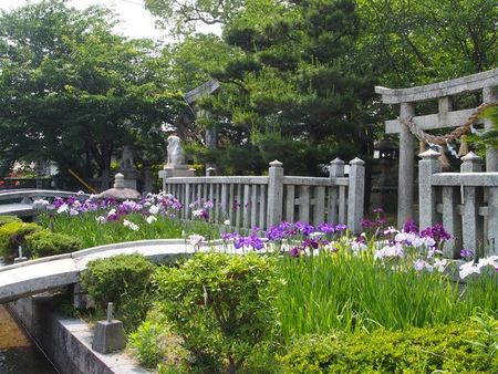そのゆかりの場所の近くにも、花、菖蒲が咲いている神社などあります。