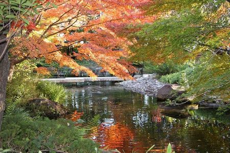 写真、一枚目は、芳松庵という、天満宮さんのお茶室のお庭の紅葉です。