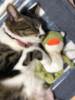 お気に入りのカエルと一緒に