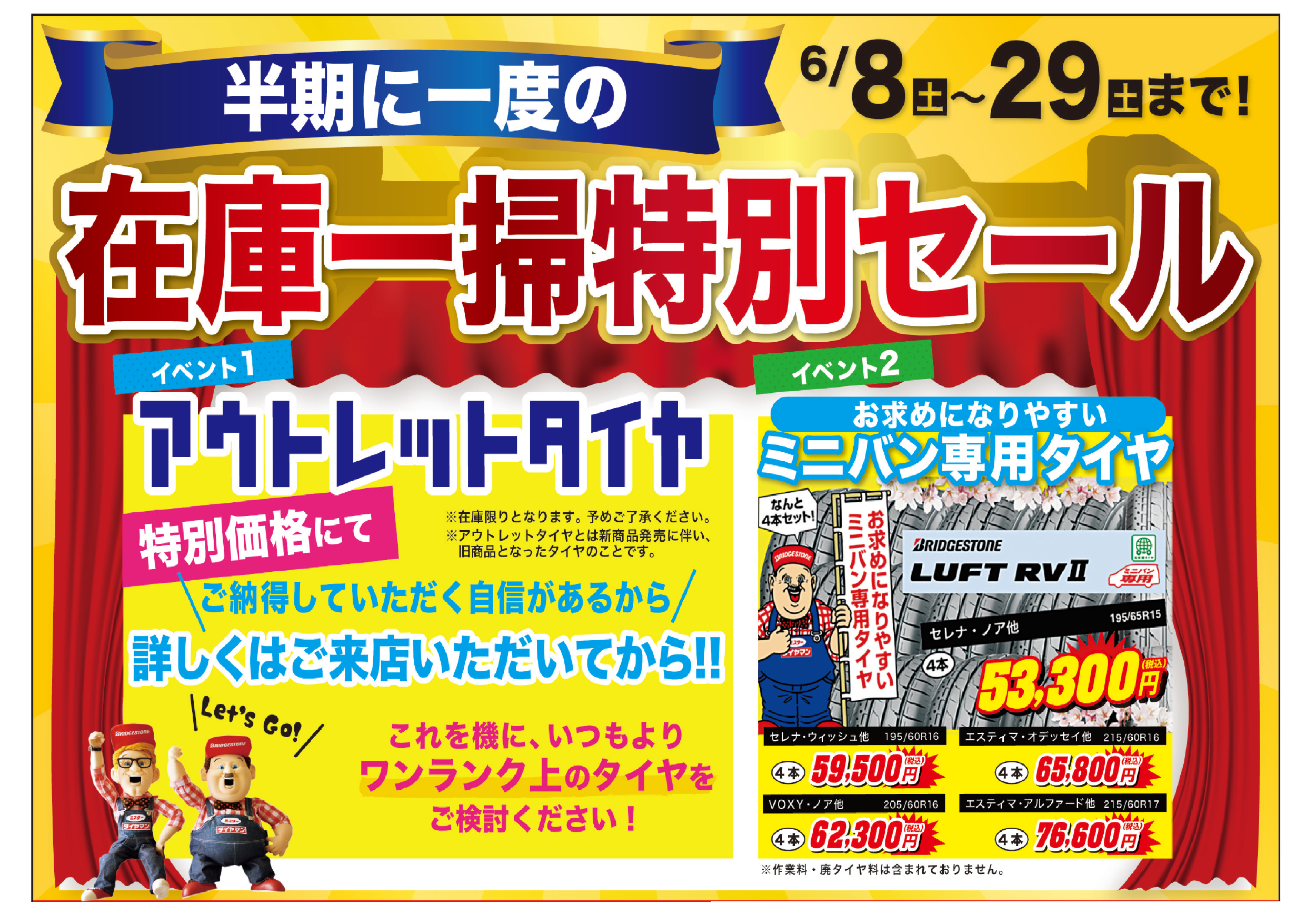 おススメはアウトレットタイヤ!新商品販売による入れ替え品や、製造年数が2~3年前のモノになりますが品質には全く問題ない商品をお求めやすい価格で提供させていただきますd(^o<)