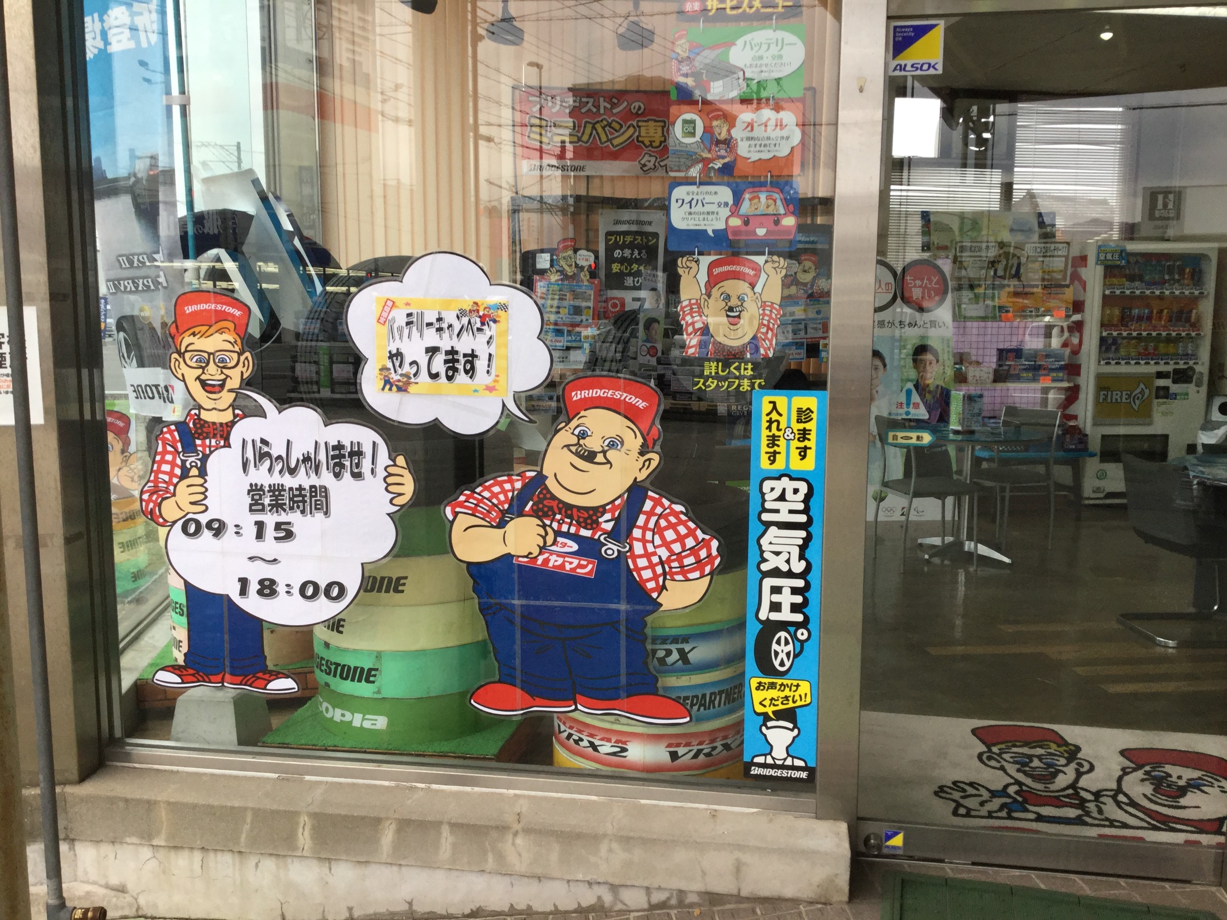 営業時間の吹き出しの痩せている方がスピーディで、バッテリーキャンペーンの告知をしている太っている方がセーフティです。