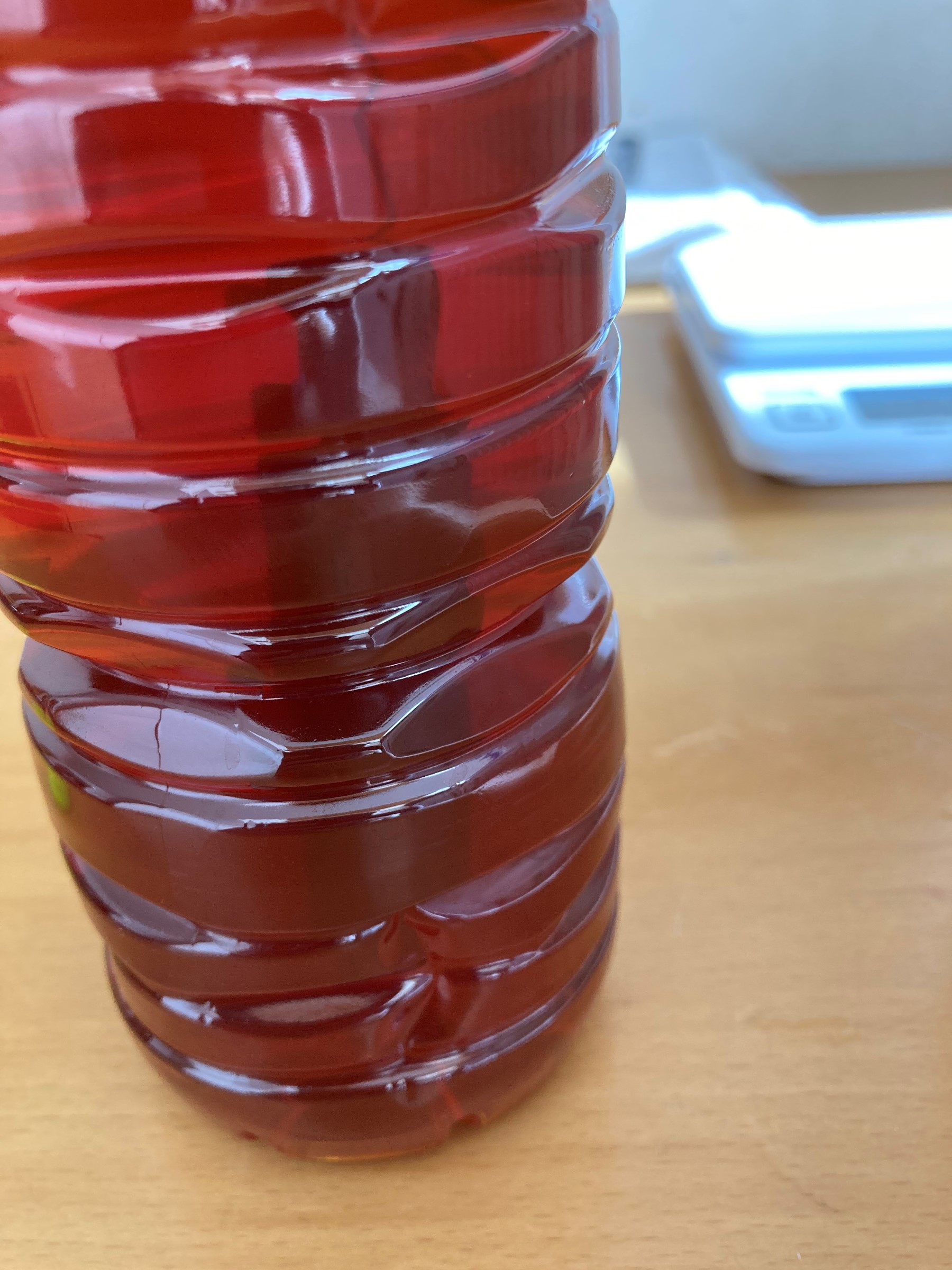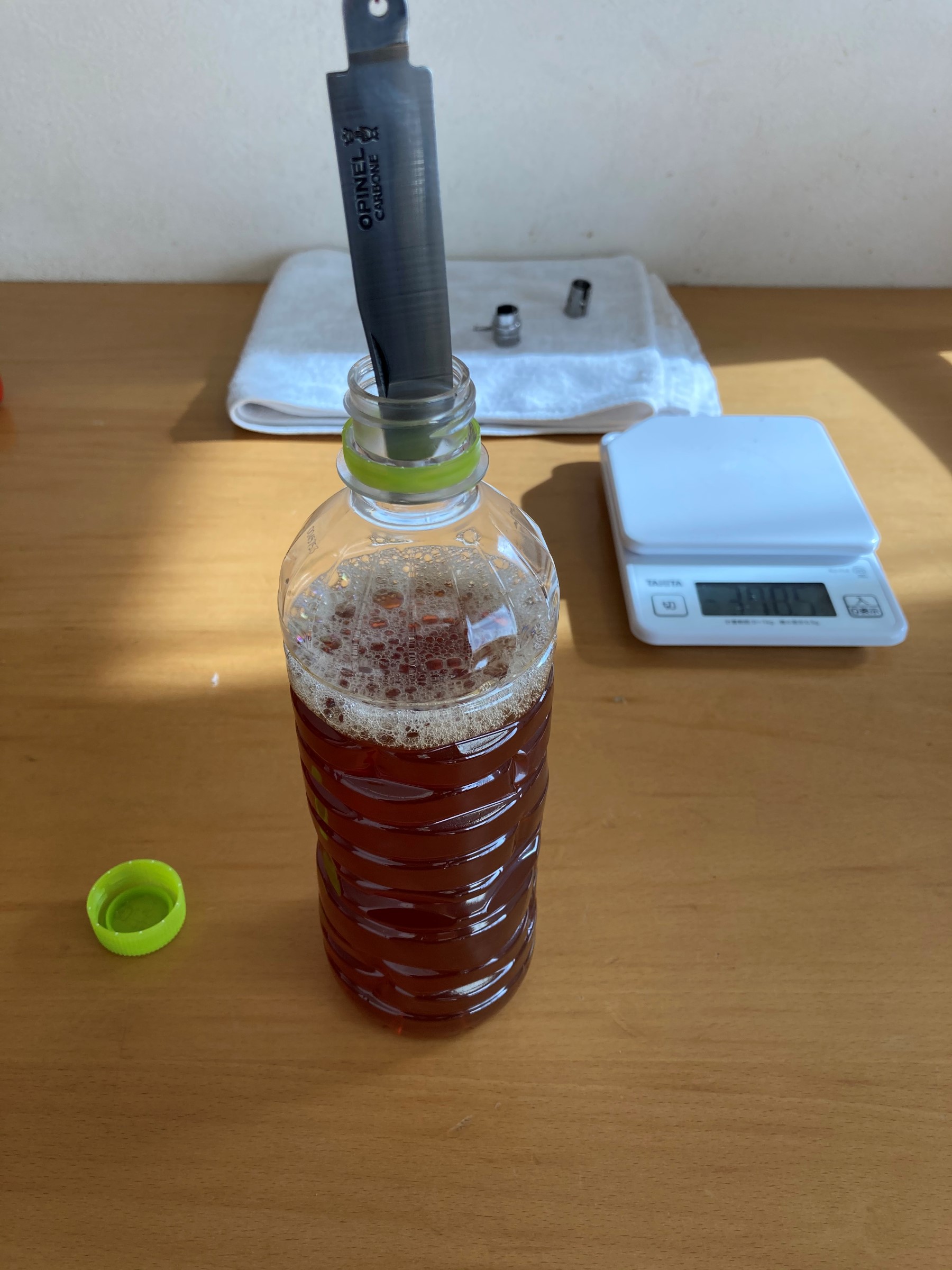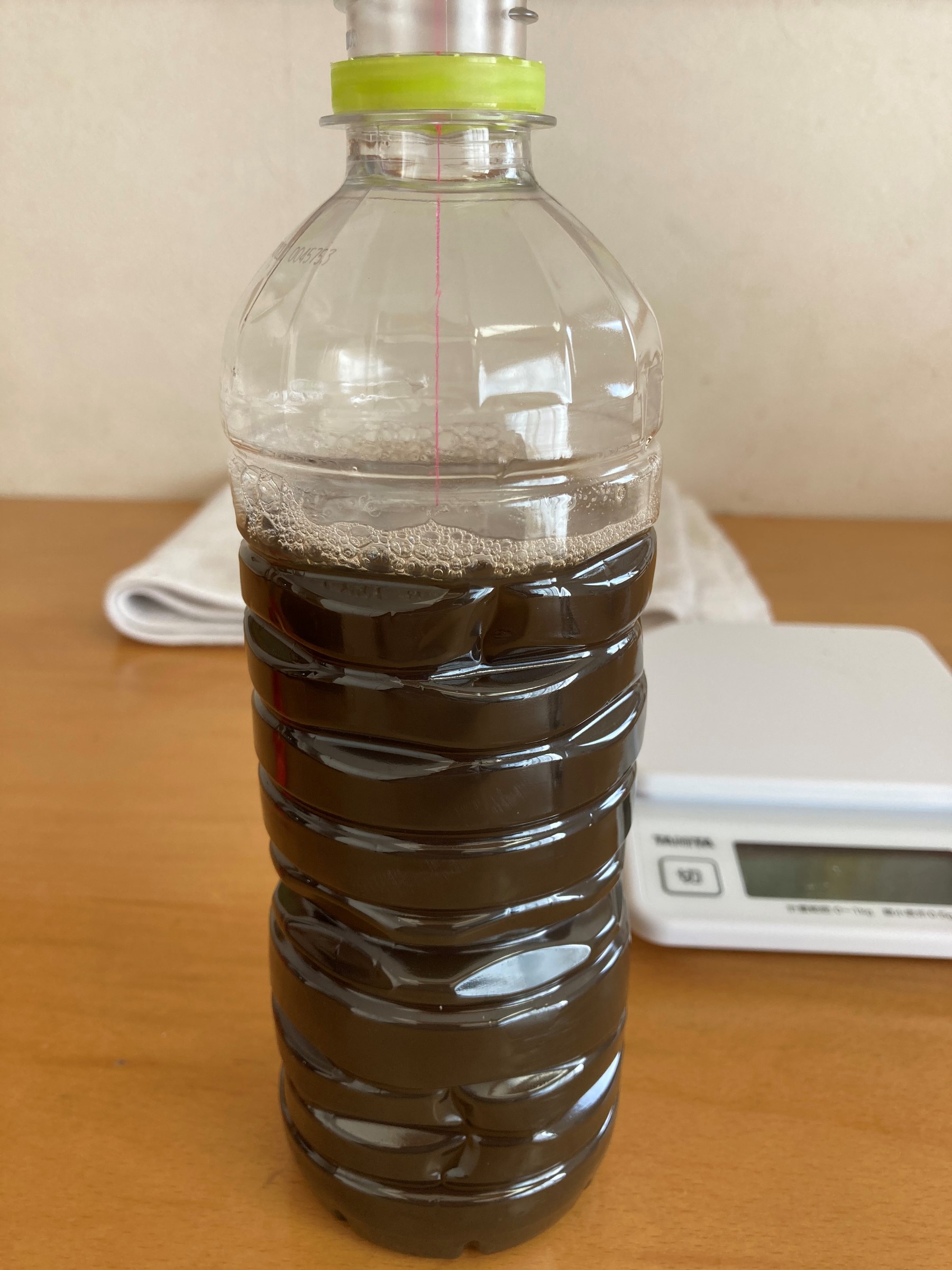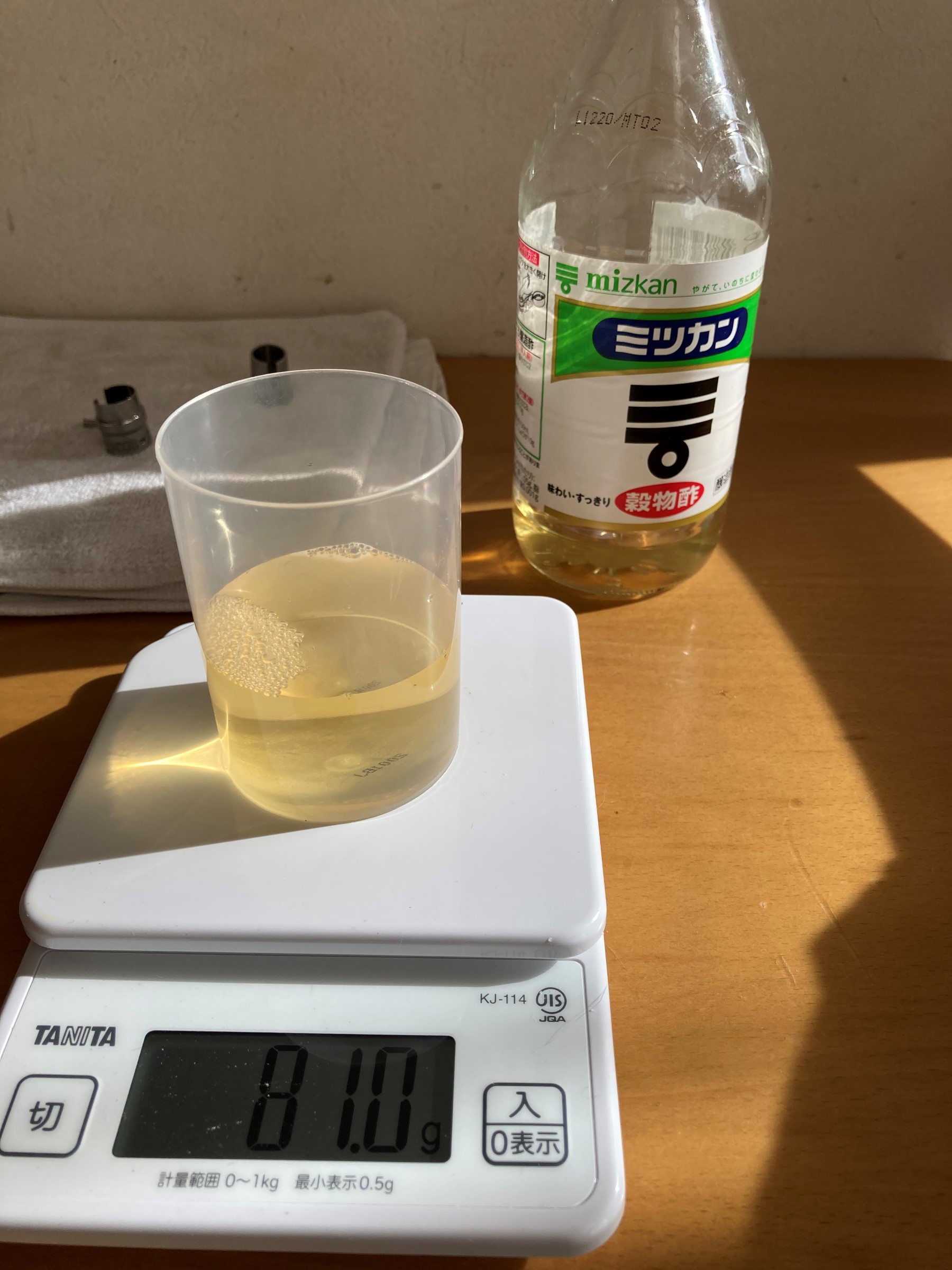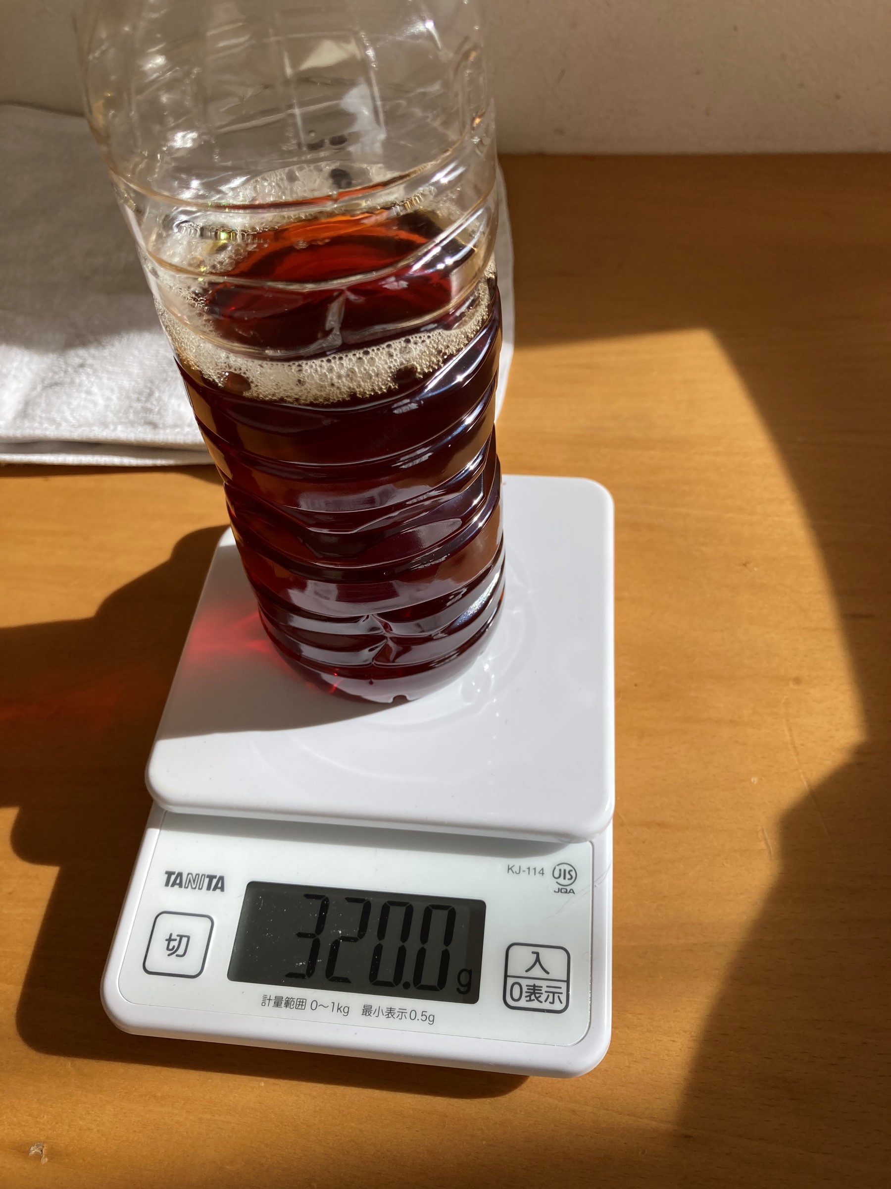濃い目の紅茶8:お酢2の比率で酢紅茶を作りまして、そこへ油分をとったブレードをダイブします!!
