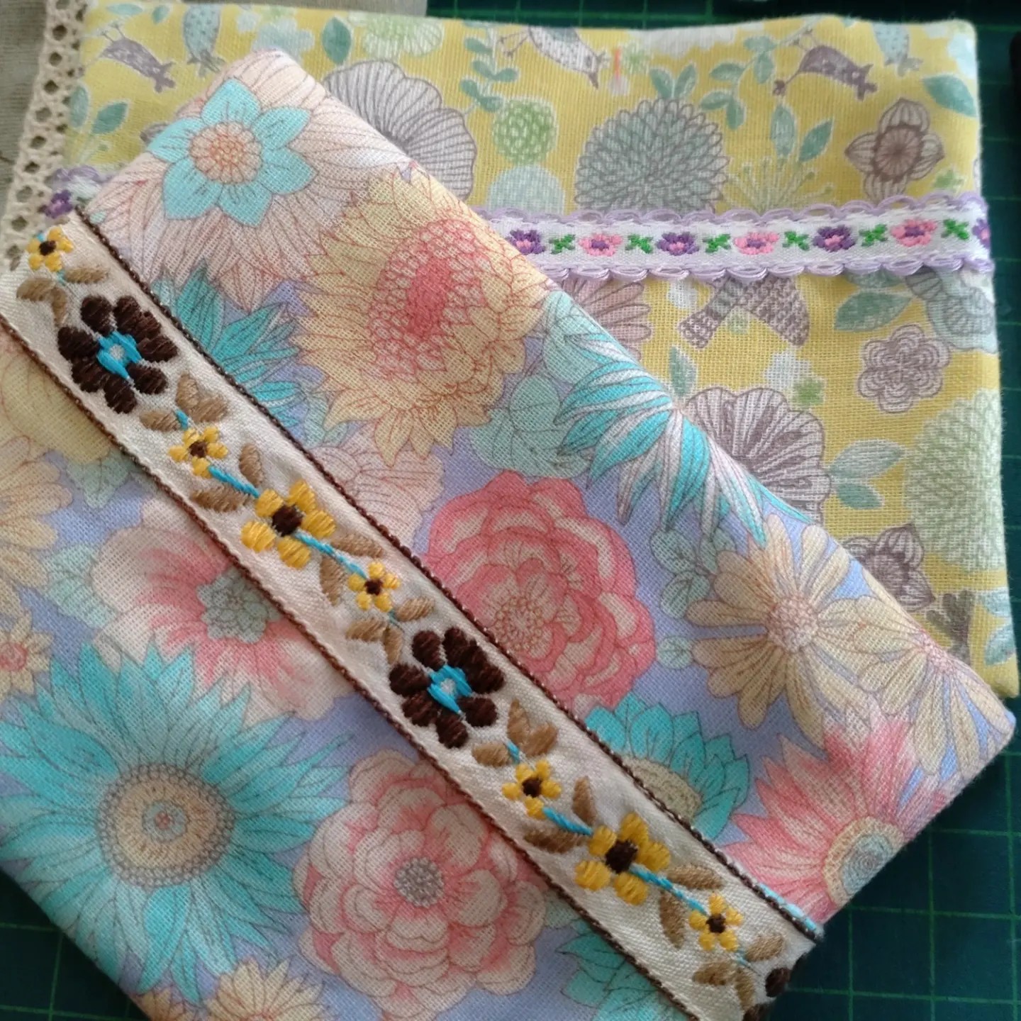 可愛いくしてみたつもりです。Wガーゼ生地沢山ありまして、大量に作ったテッシュケースが