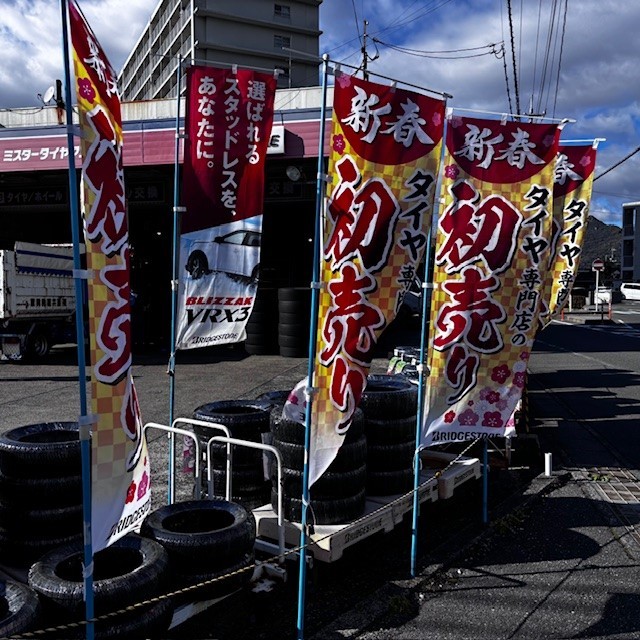 新年のご挨拶 2025年1月14日 遅くなりましたが 新年明けましておめでとうございます。 今年もよろしくお願いいたします。 当店では新春初売りを開催しております♪ 寒さもまだまだ続きますがスタッドレスタイヤもまだ有りますのでぜひ一度ご来店ください。