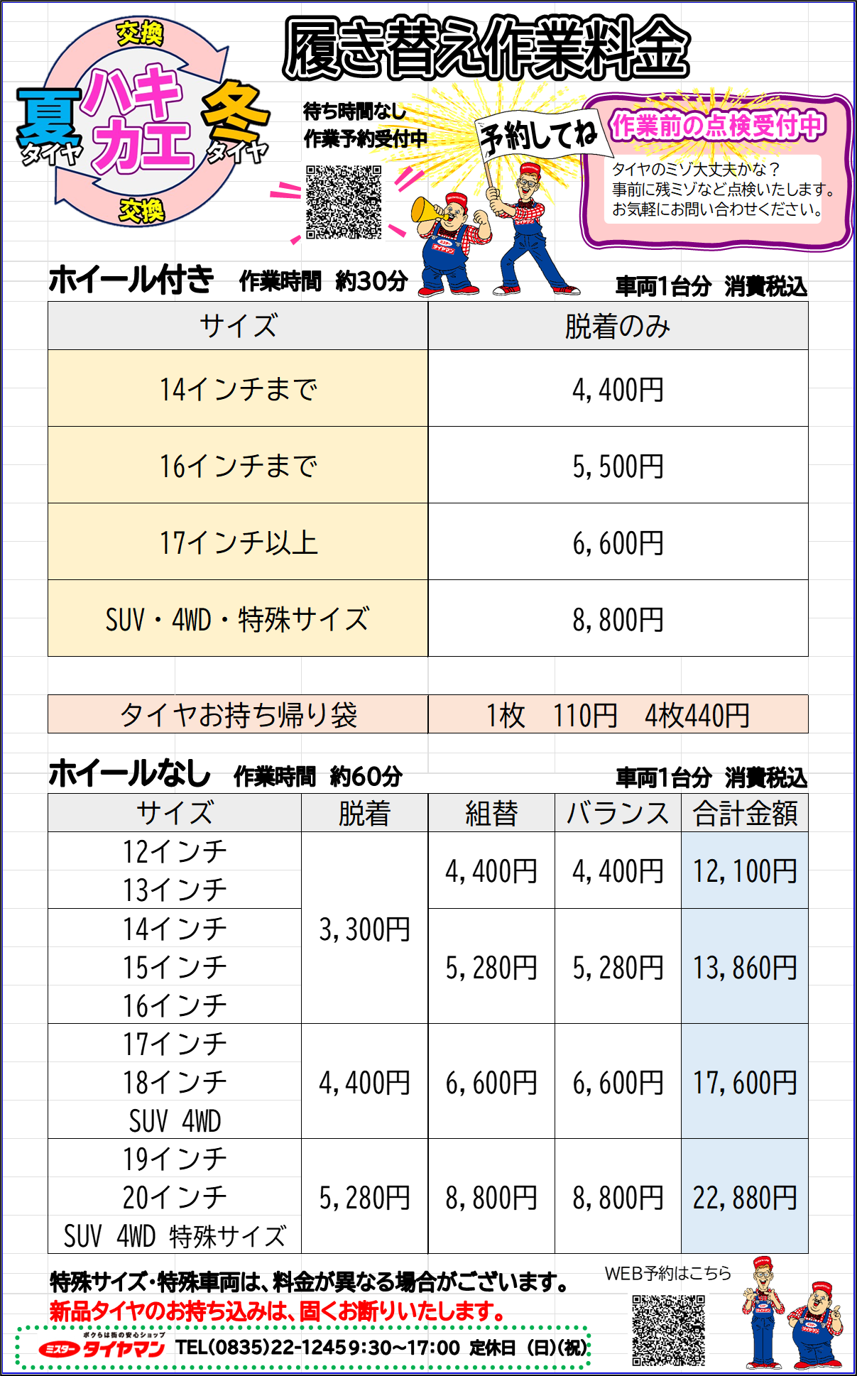 また 人件費などの高騰 により、やむを得ず作業工賃を改定させていただくことになりました。