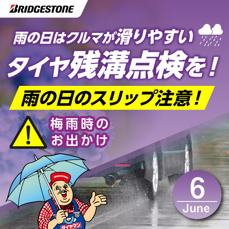 タイヤの溝が減っていると雨の日は特に滑りやすく危険です。