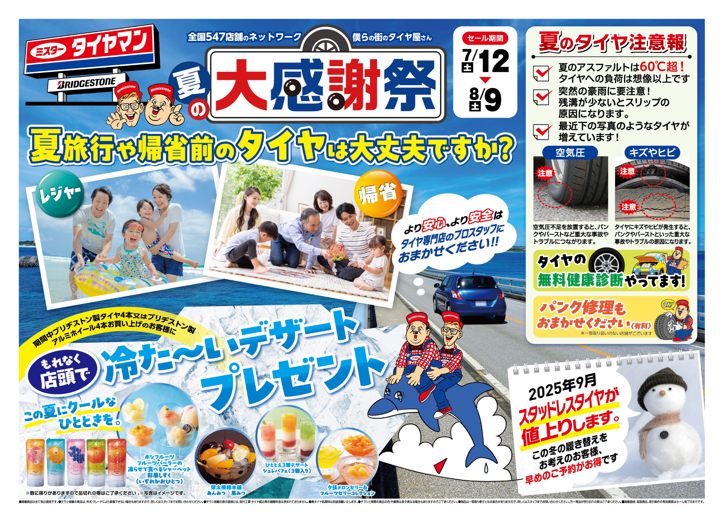 夏のドライブを快適安全に楽しめるよう無料安全点検や空気圧点検などお気軽にご来店ください!