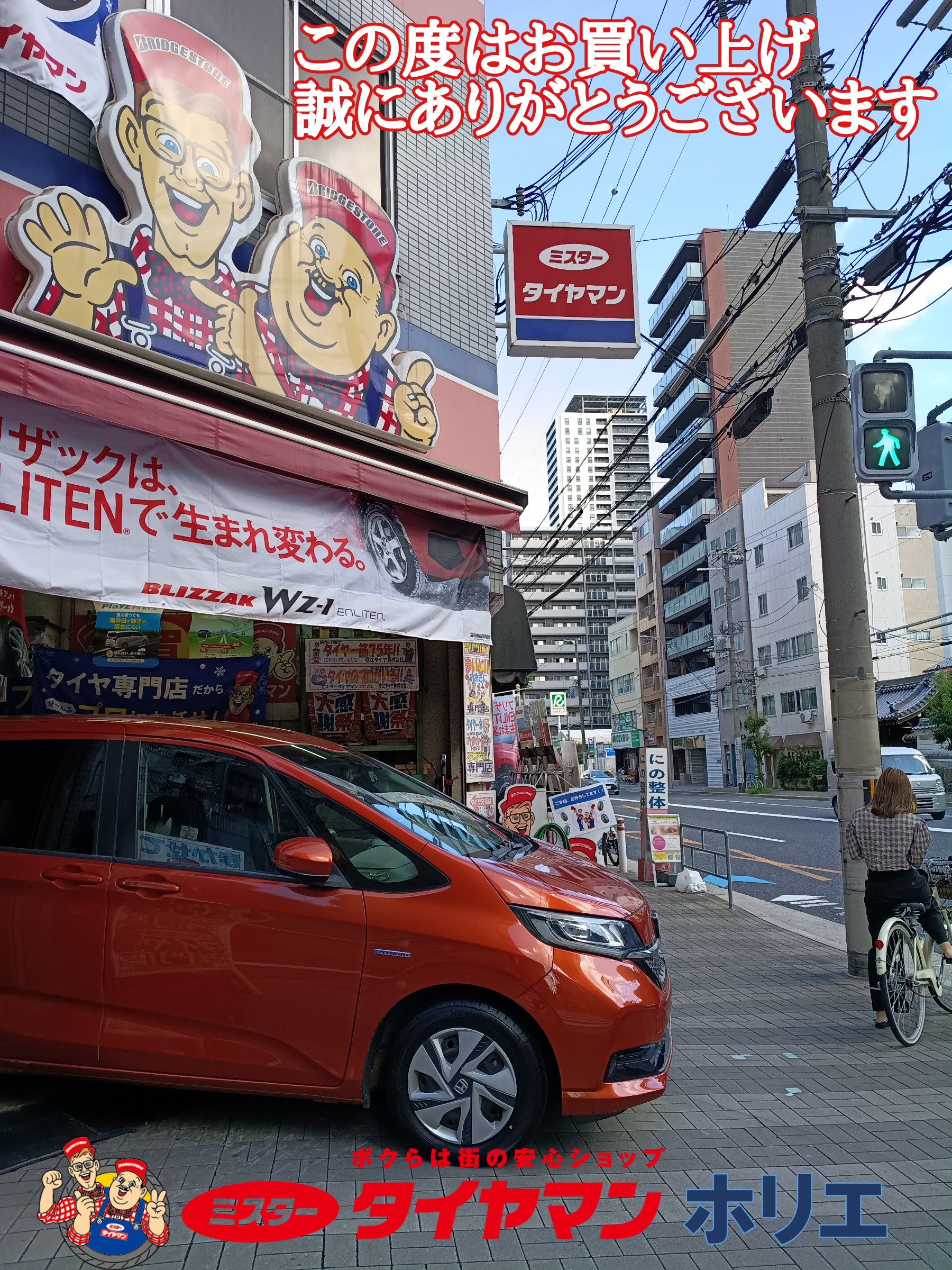 大阪・堀江でホンダ フリードのタイヤ交換は「タイヤ一筋75年!」の当店にお任せください!"(ノ*>∀<)ノ