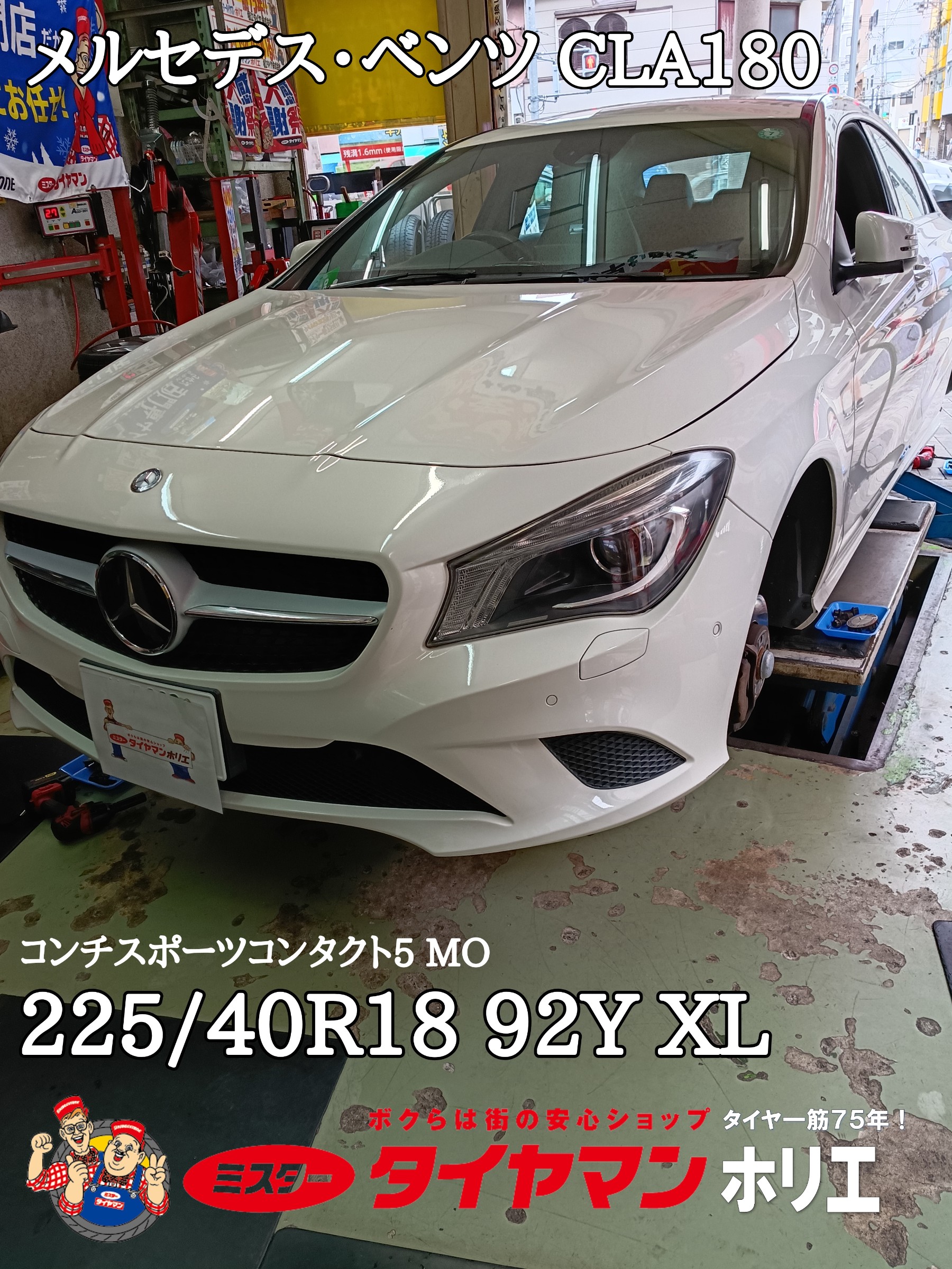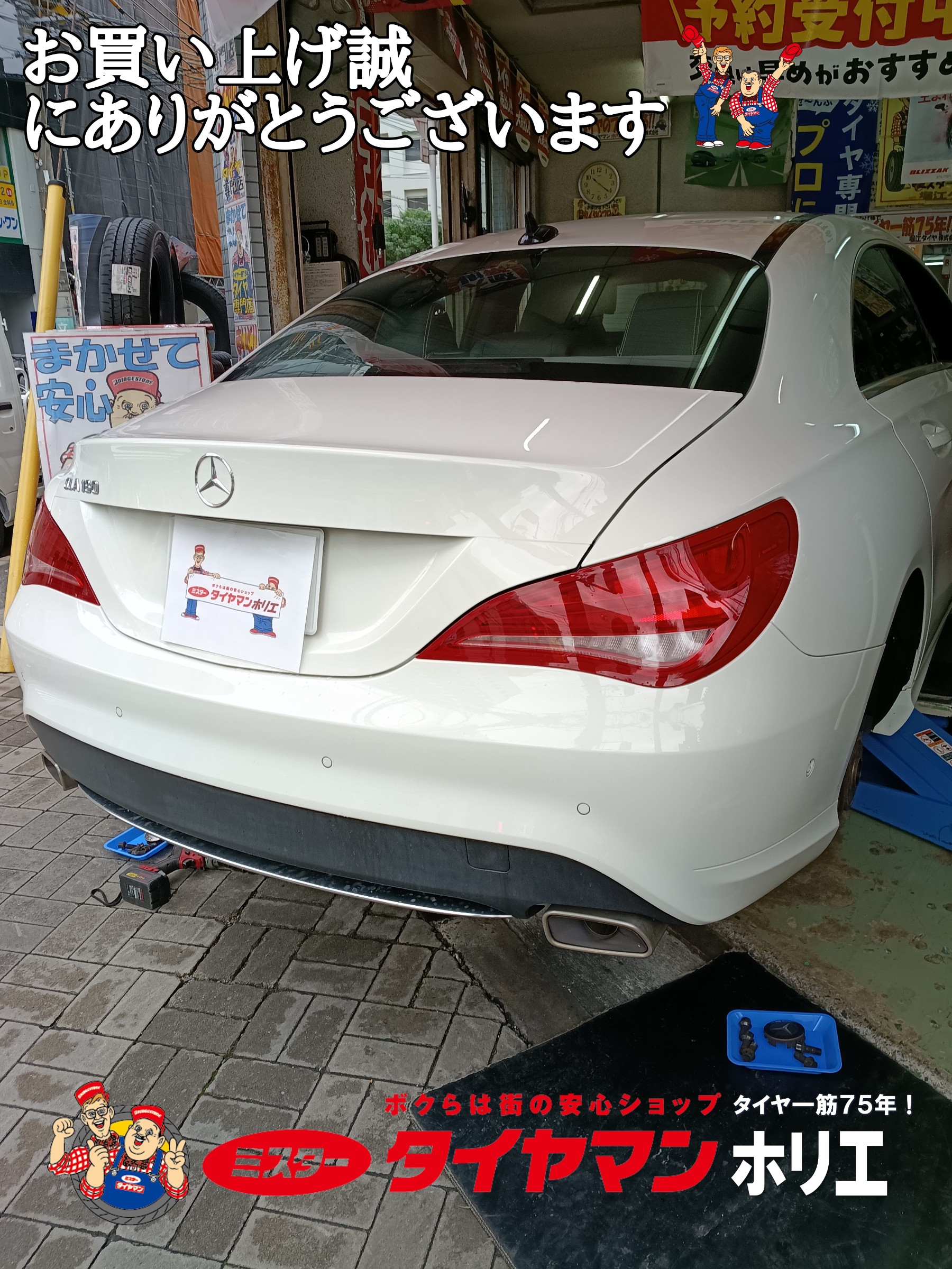 大阪・堀江でメルセデス・ベンツ CLAのタイヤ交換は「タイヤ一筋75年!」のミスタータイヤマン ホリエにおまかせ下さい *\(^o^)/*
