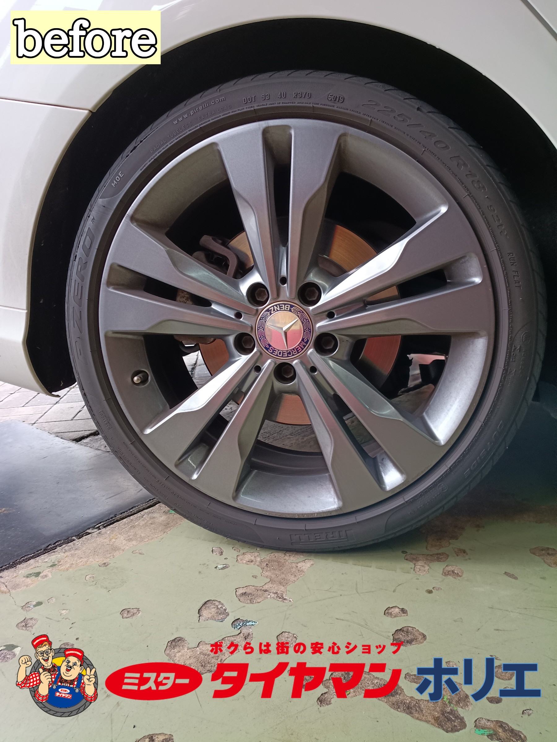 メリット、デメリットをお客様と相談させて頂き新しいタイヤはノーマルタイヤのMO(メルセデス・ベンツ承認)をチョイス頂きました(o^^o)