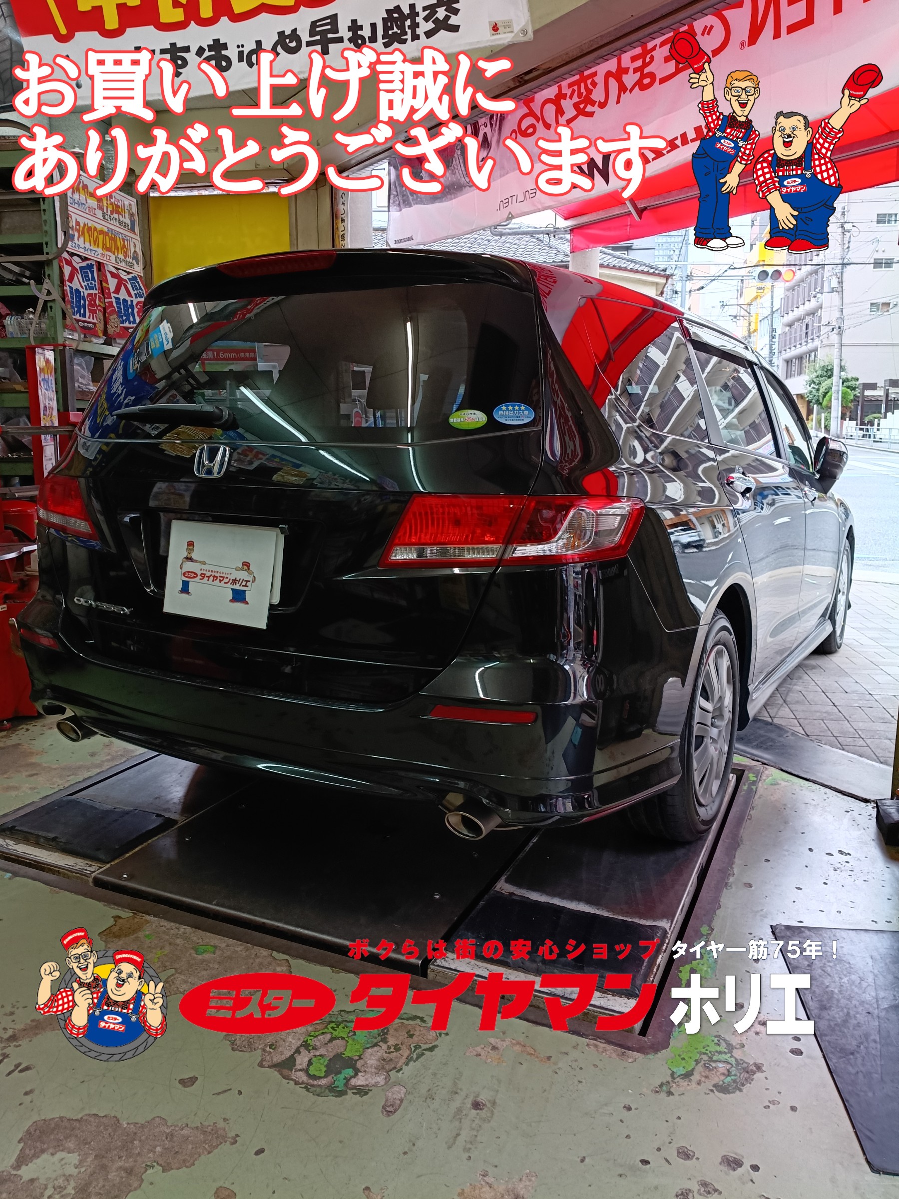 大阪・堀江でオデッセイのタイヤ交換は「タイヤ一筋75年!」のミスタータイヤマン ホリエにお任せ下さい!(>ᴗ<)