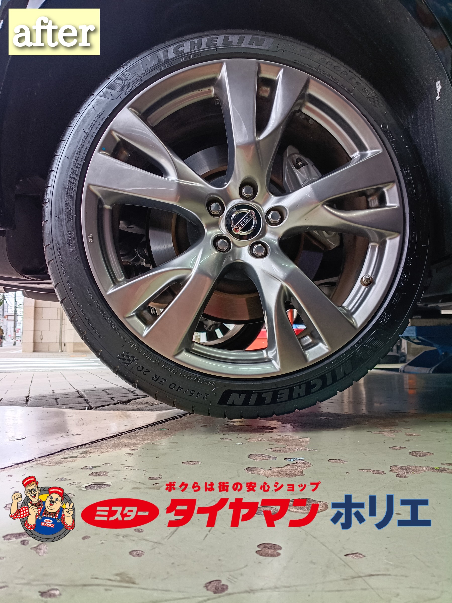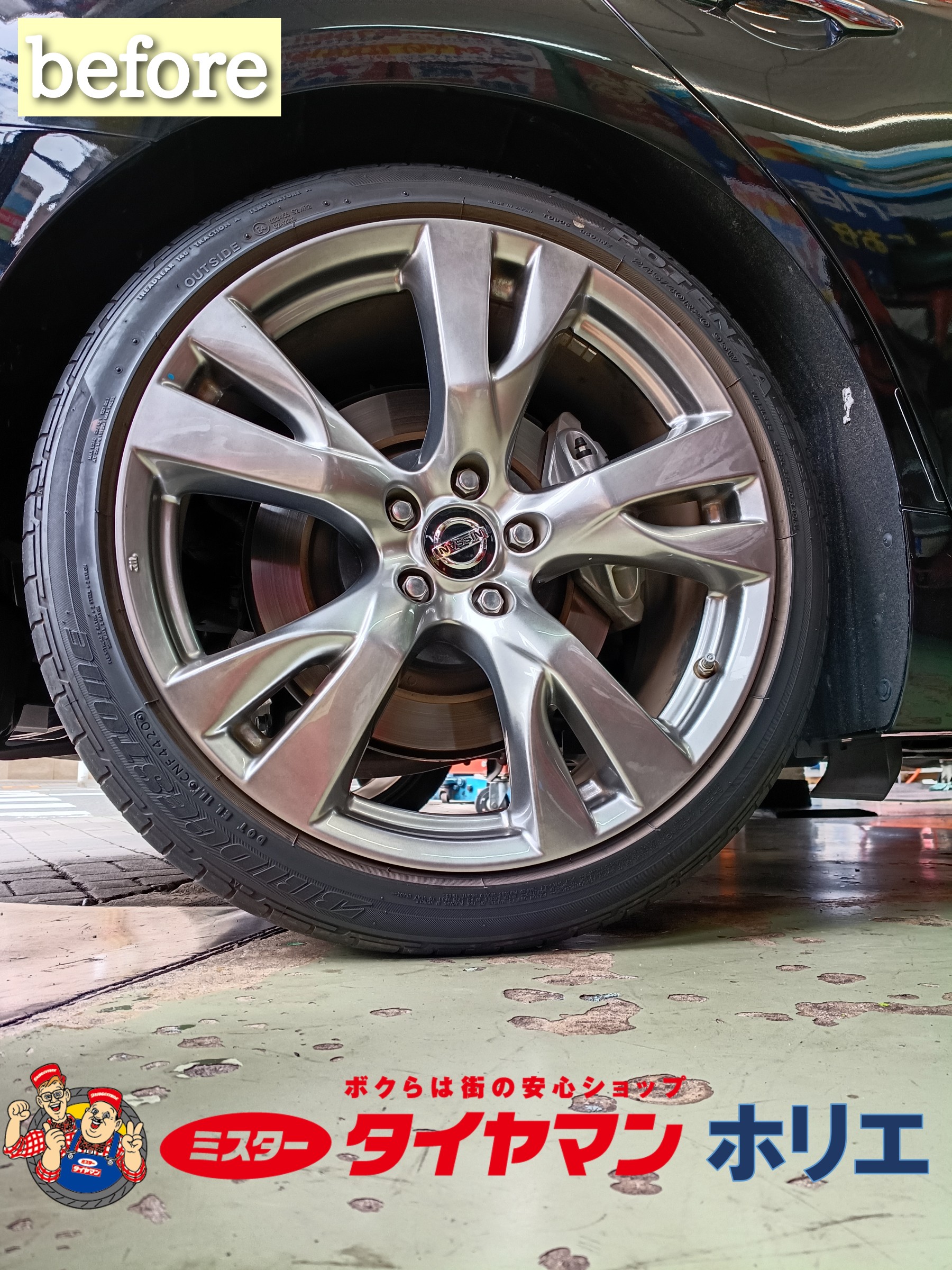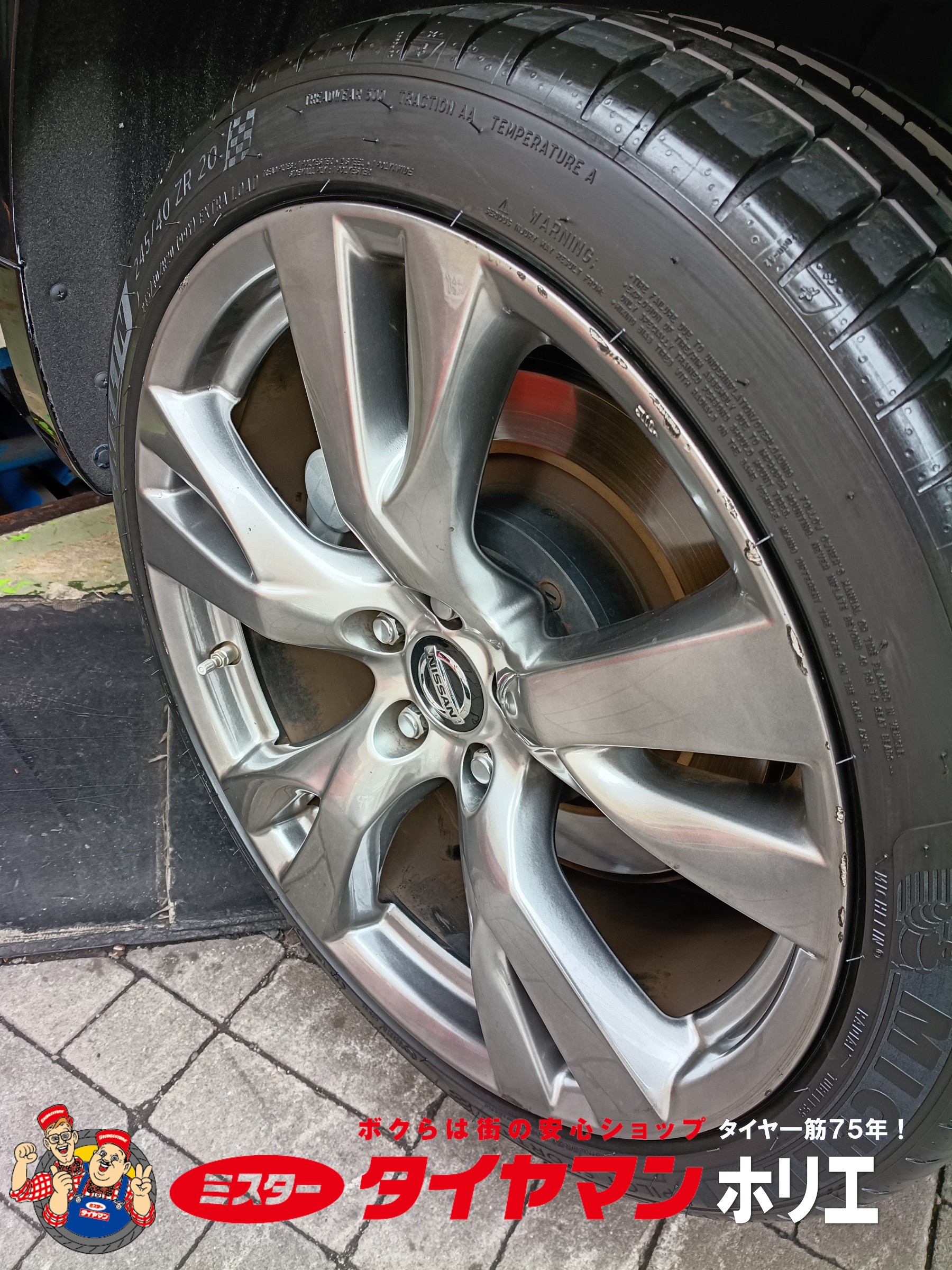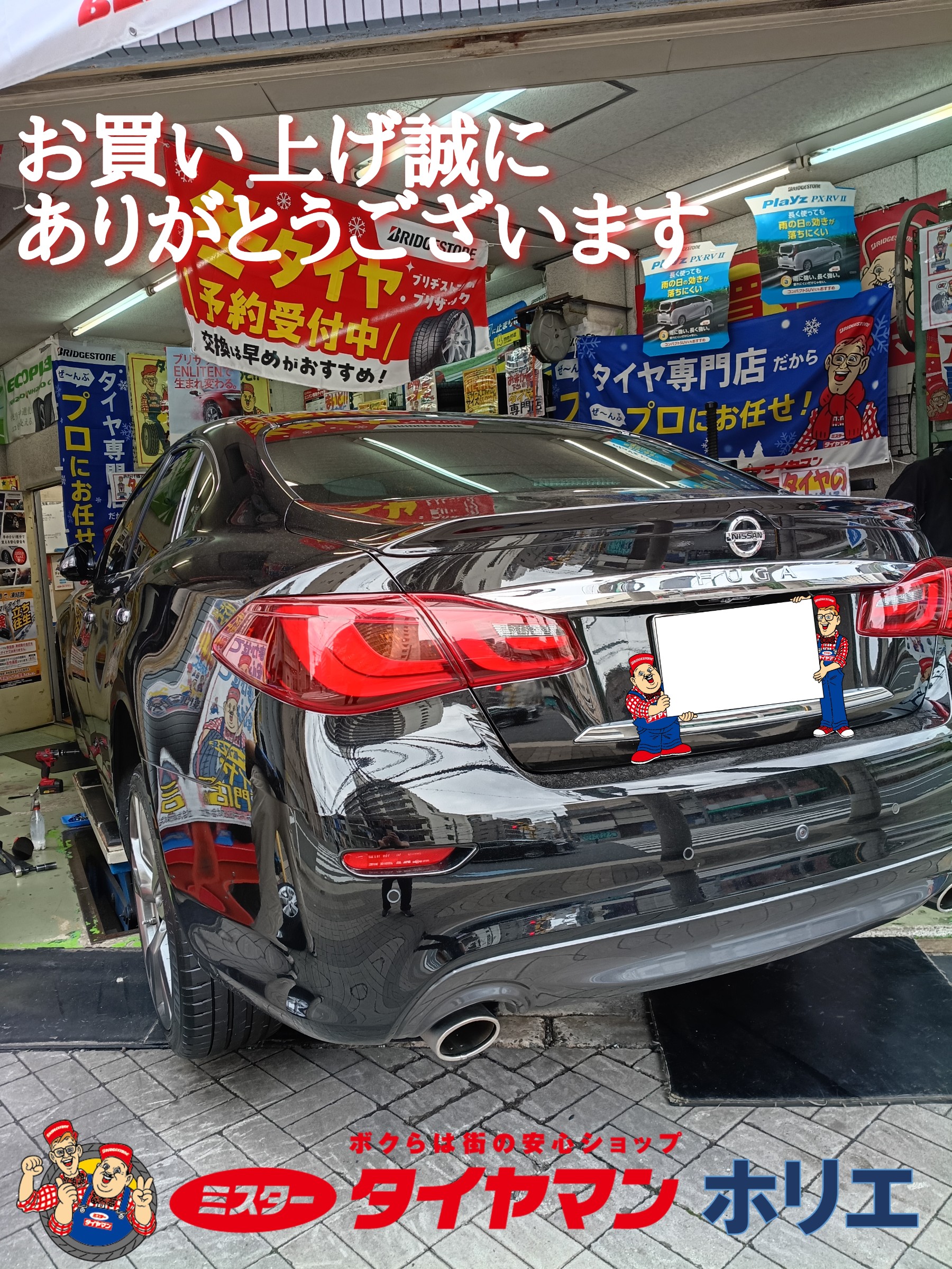 大阪・堀江でNISSAN フーガのタイヤ交換は「タイヤ一筋75年!」ミスタータイヤマン ホリエ/堀江タイヤ株式会社にお任せ下さい!( •ω- )☆