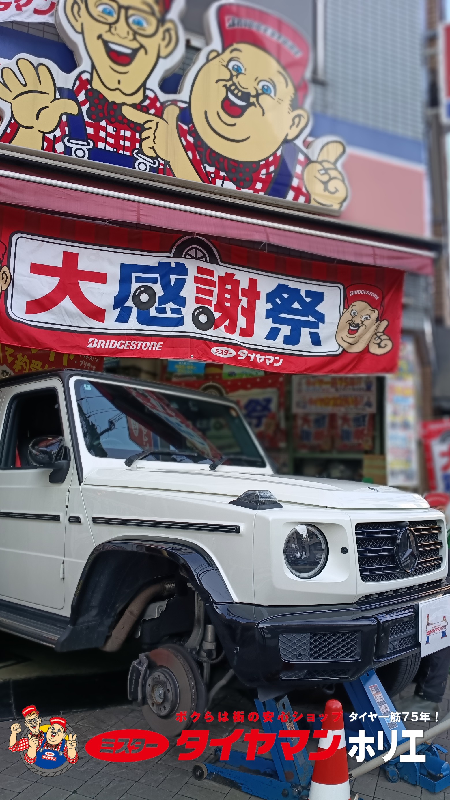 大阪・堀江でメルセデス・ベンツ Gクラスのタイヤ交換は「タイヤ一筋75年!」のミスタータイヤマン ホリエ/堀江タイヤ株式会社にお任せ下さい*\(^o^)/*