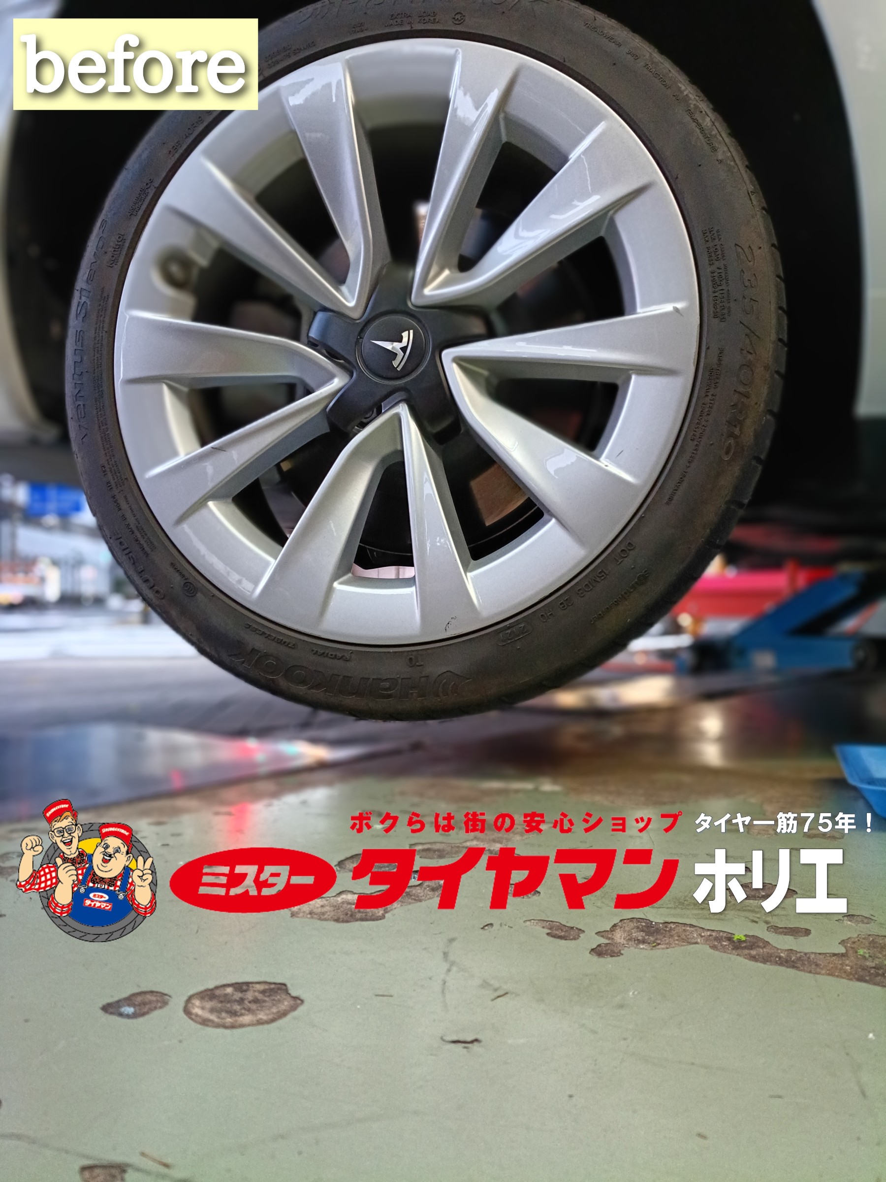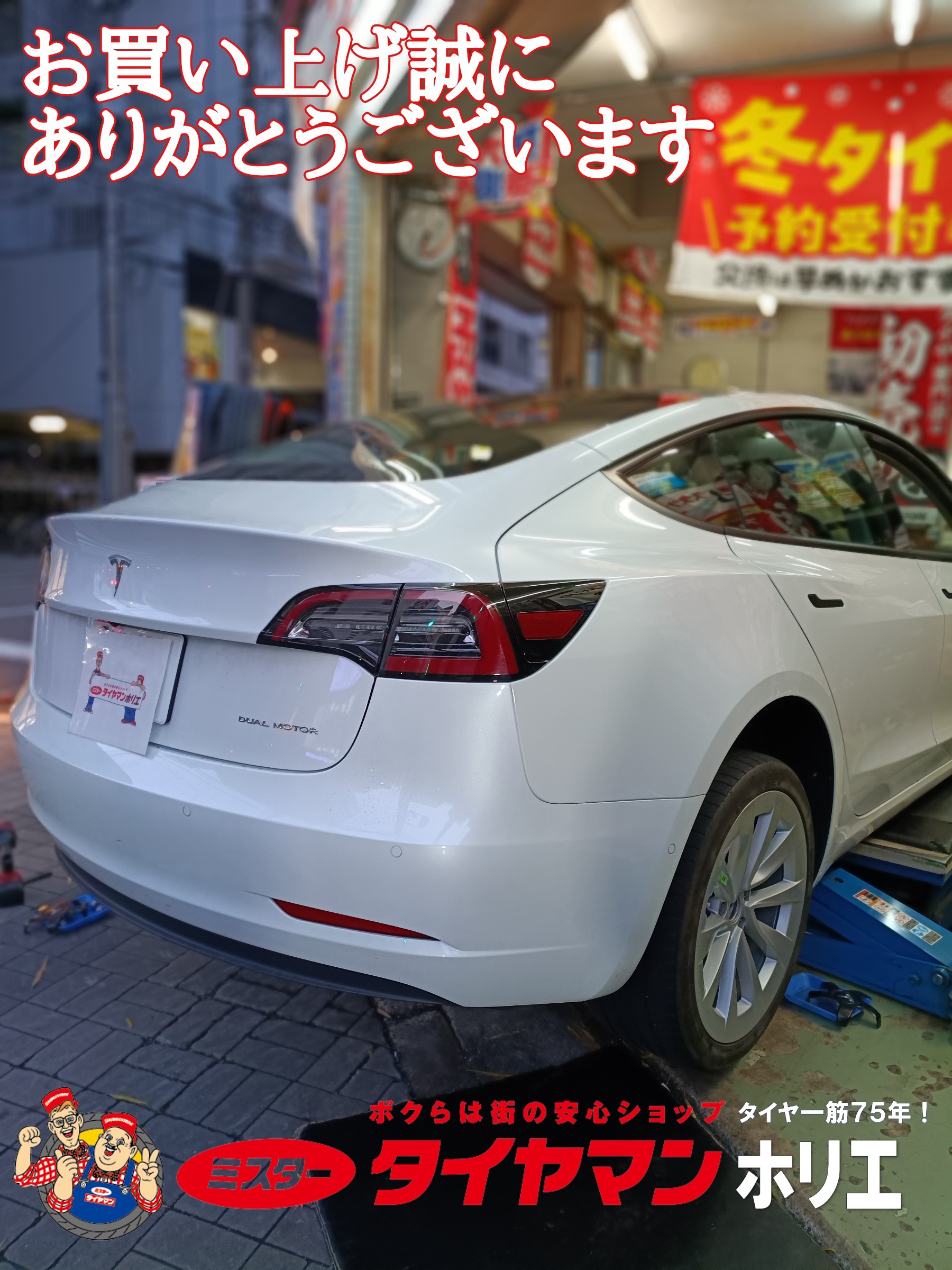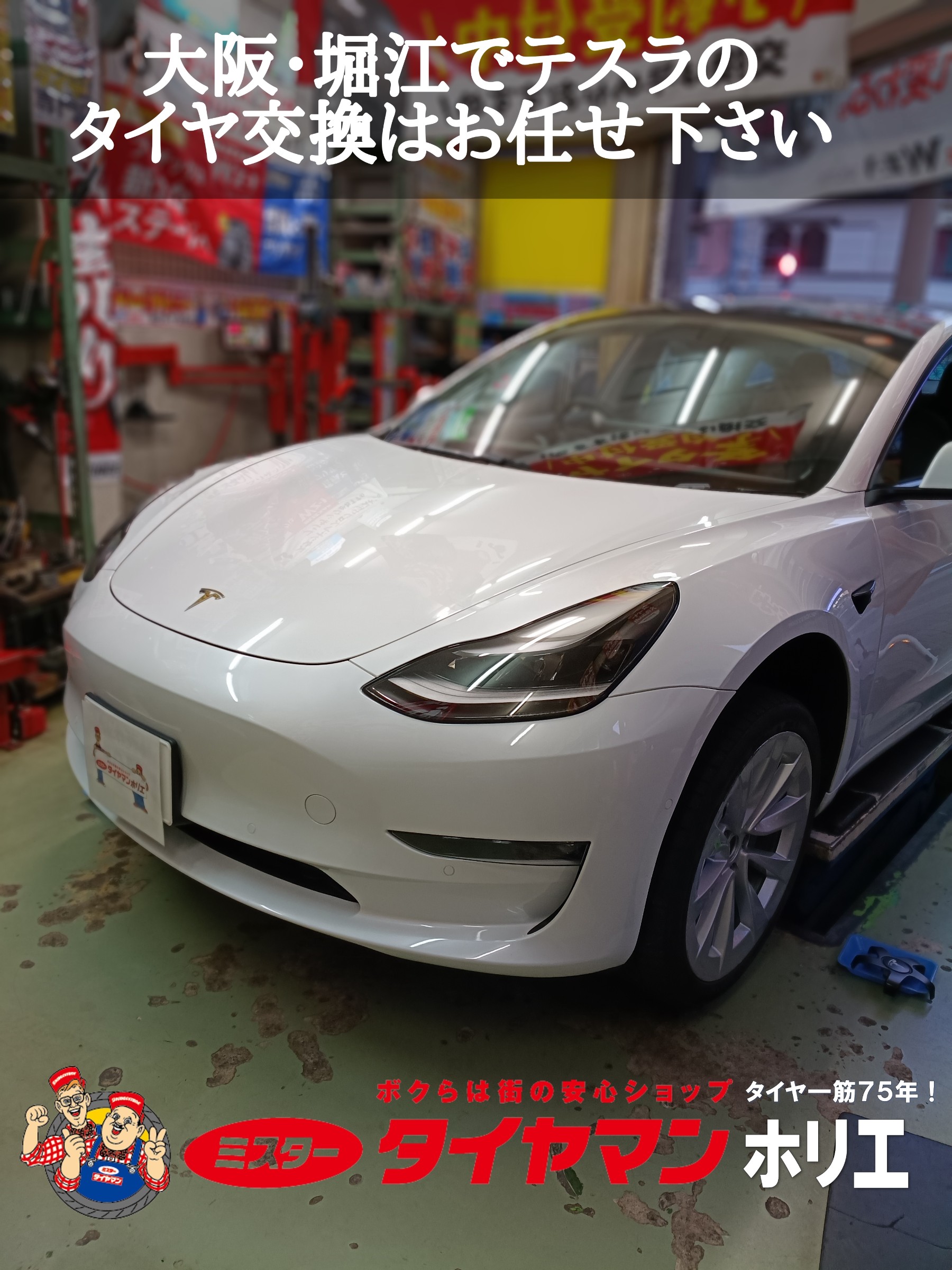 大阪・堀江でテスラのタイヤ交換はミスタータイヤマン ホリエ/堀江タイヤ株式会社にお任せ下さい(´>∀<`)ゝ
