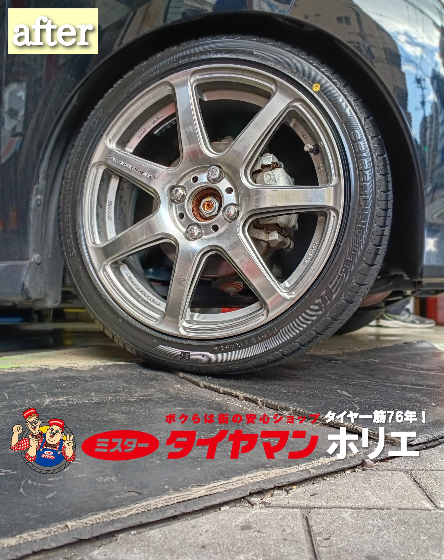 タイヤを外す時に少しオーバートルクでしたがトルクレンチにて適正トルクにて作業させて頂き完成です( •ω- )☆