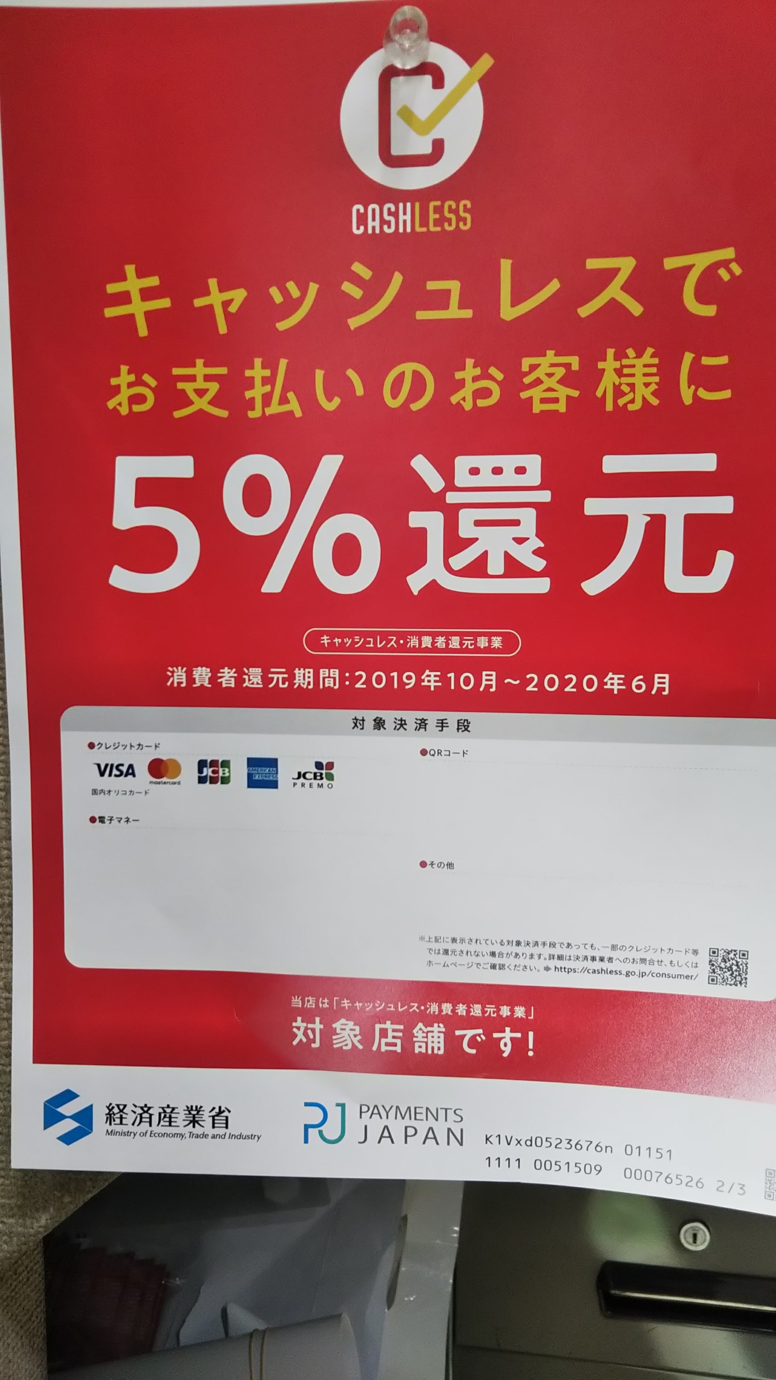 当店ではキャッシュレス5%還元対象店です。詳しくはお問い合わせ下さい。