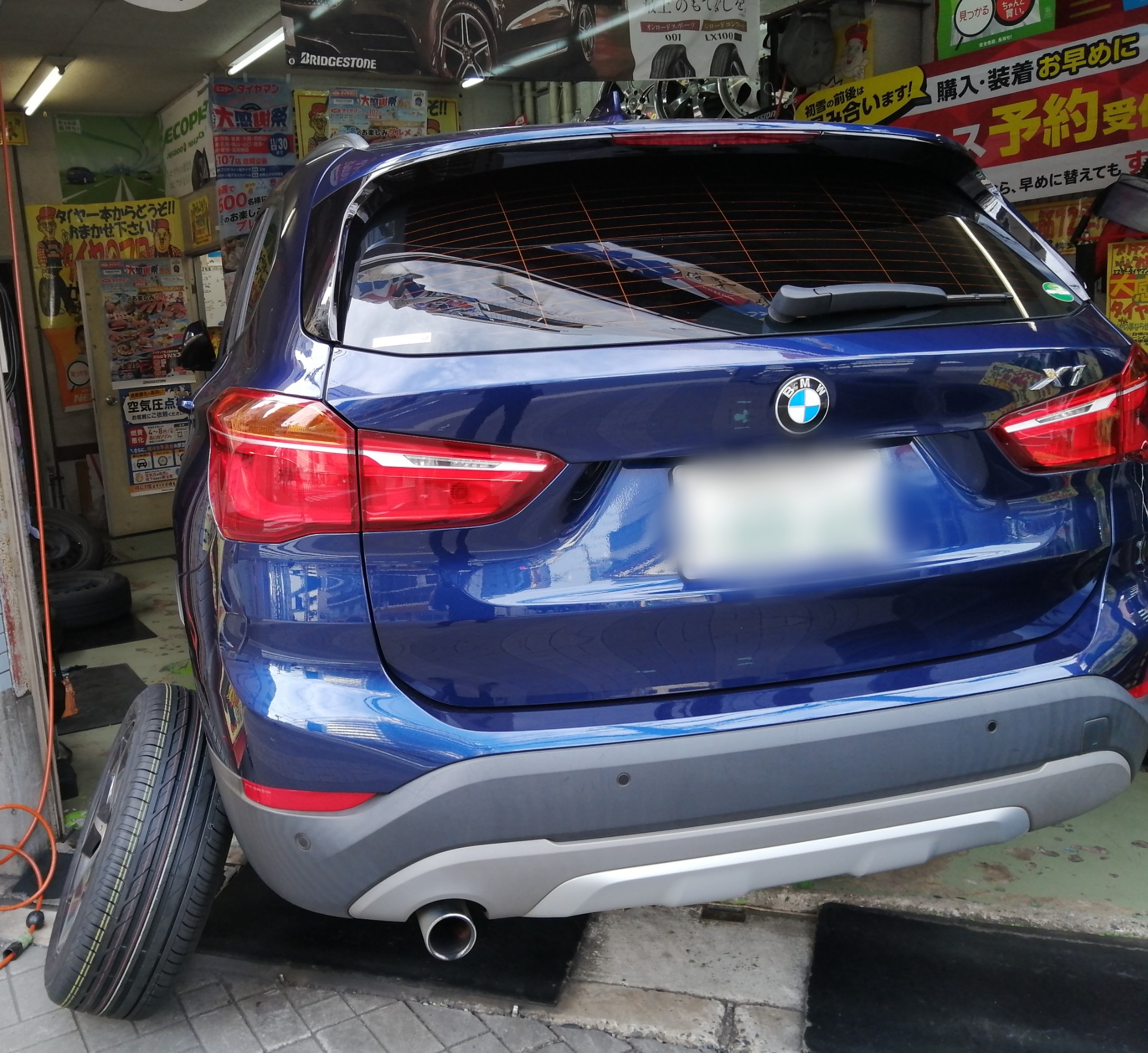 BMW X1 です。(* ^ー゜)ノ 以前に「タイヤ内面焼付け修理」をさせて頂いたお客さまで今回は車検でしたがフロントタイヤが磨耗していた為ご注文頂きました。(人*´∀`)